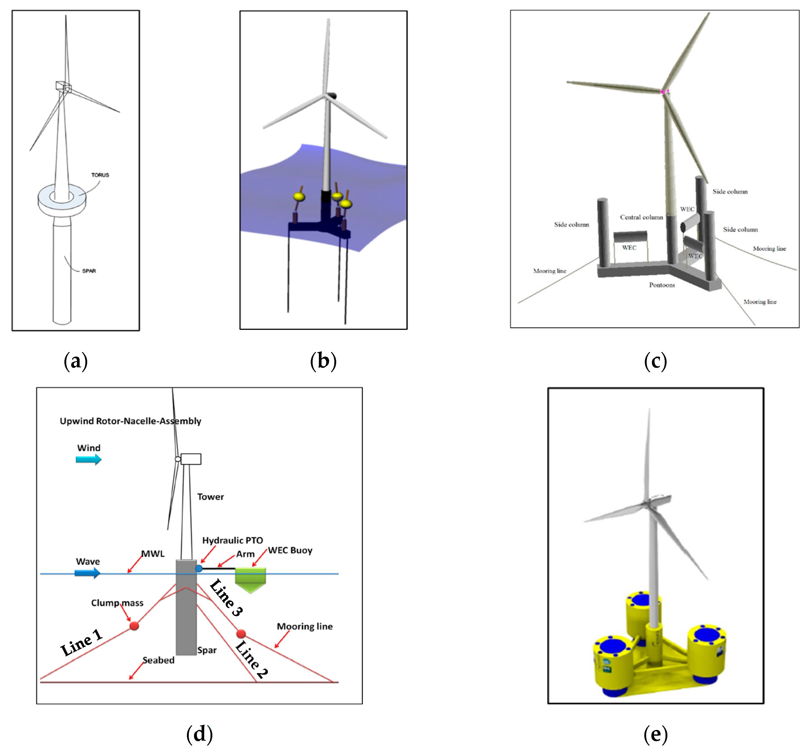 - Wan, L.; Moan, T.; Gao, Z.; Shi, W. A review on the technical development of combined wind and wave energy conversion systems. Energy 2024, 294, 130885. [Google Scholar] [CrossRef]