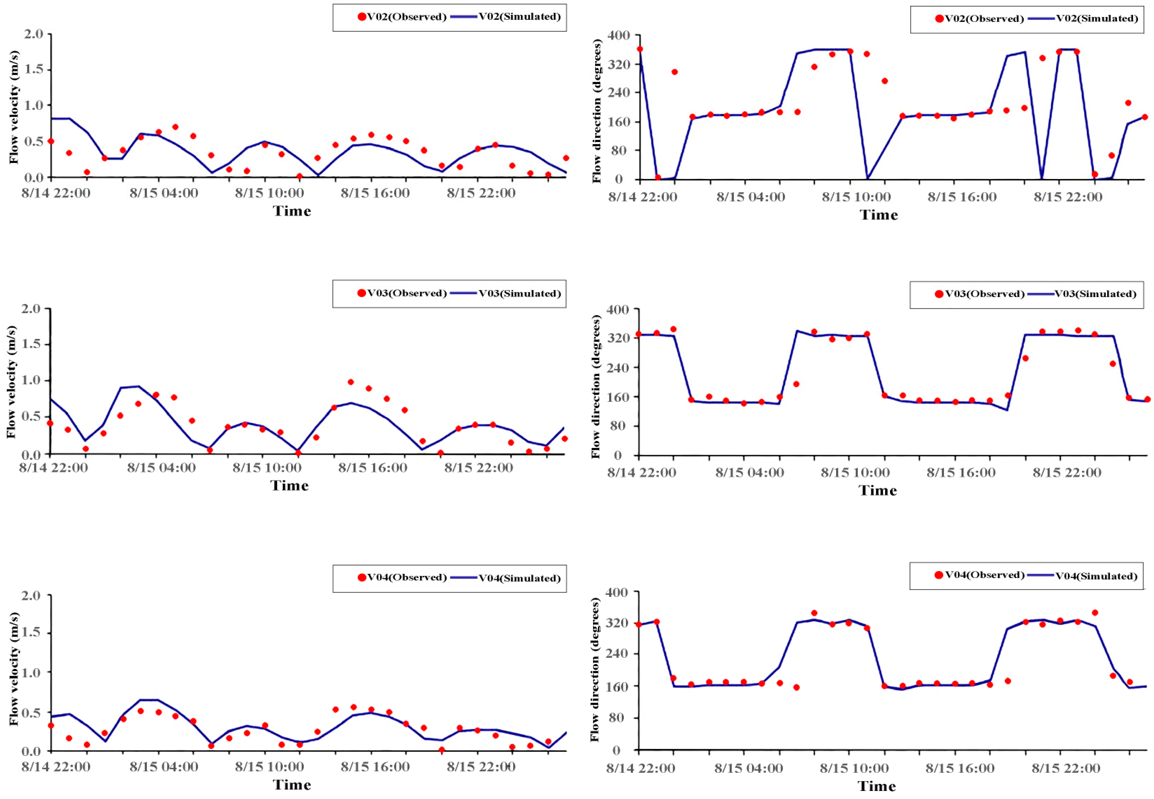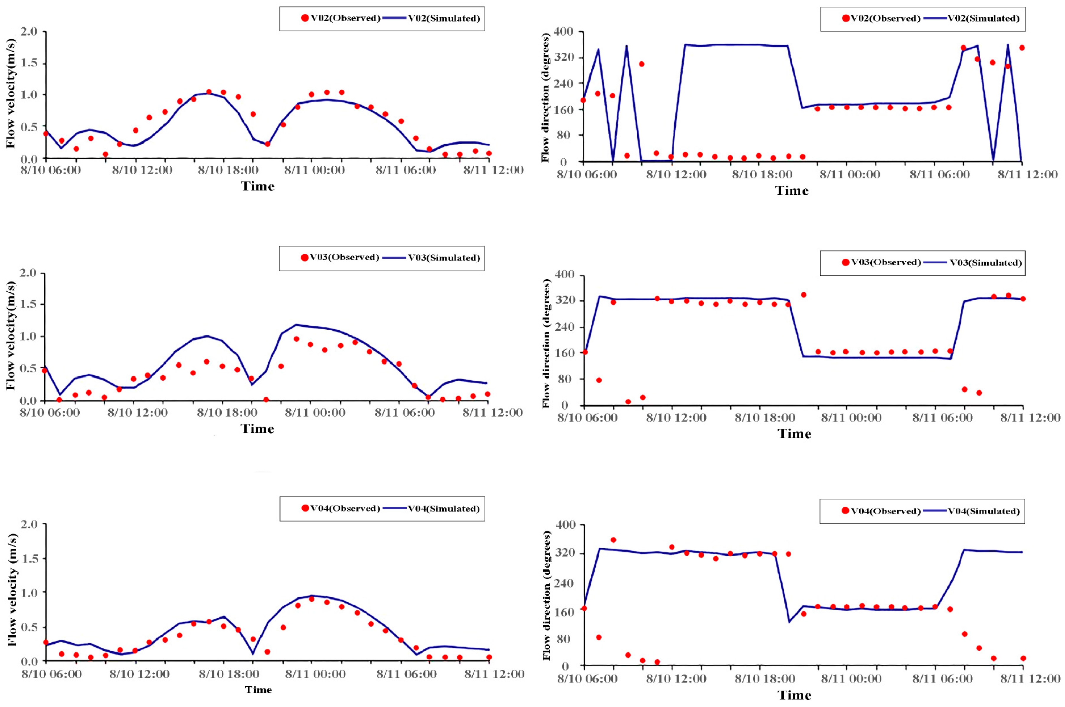| Flow Velocity (m/s) | Flow Direction (Degree) | Flow Velocity (m/s) | Flow Direction (Degree) | ||