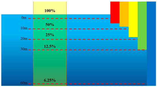 As shown in Figure 2, light of different wavelengths is absorbed by the water medium to different degrees. The red light has a longer wavelength and a lower frequency, so it disappears earlier. As the water depth increases, the green light is gradually absorbed and disappears. The blue light is absorbed and disappears at a depth of more than 60 m. Therefore, images acquired underwater generally appear in blue-green tones. Image quality is generally poor in underwater environments.