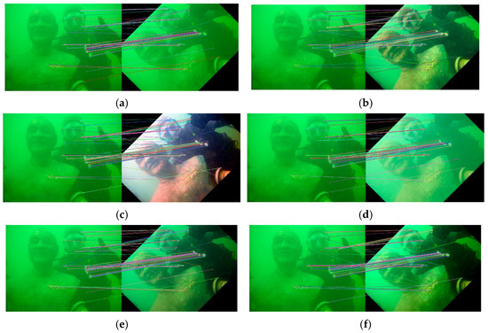 The purpose of image enhancement processing is to obtain clearer and better visual effects of underwater images. This facilitates subsequent practical application analysis, such as underwater biological classification and seafood identification. In order to prove the practical application effect of the images processed by this algorithm, image feature extraction and matching experiments were conducted. These experiments were based on the SURF (Speeded Up Robust Feature) [31] algorithm. SURF is an algorithm for detecting image features. It can intuitively illustrate the effectiveness of the algorithm in improving image details. The higher the clarity of the processed image, the richer the texture details. This results in a greater number of matched image feature points. Figure 7 shows the results of the SURF feature point matching experiment using an underwater image in the UIEB dataset. The image matching results processed by different algorithms were analyzed. Table 5 provides the number of matched feature points for each group of algorithms. The test results indicated that the number of correct feature point matches in the images processed by this algorithm was significantly higher than that achieved by most other algorithms. It was second only to ICM and MIP. However, the indicators in Table 4 demonstrate that the images generated by these two algorithms are of low quality, leading to misdetection of matching feature points. In conclusion, the algorithm presented in this paper not only improves image quality and visual effects. It can also achieve better results in practical applications such as object recognition.
