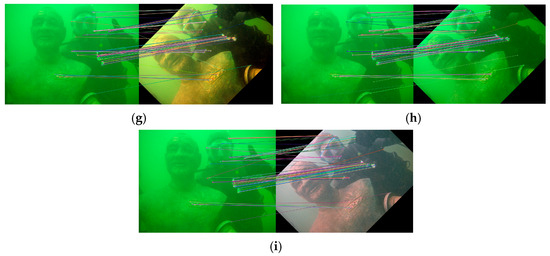 Comparison of feature point matching between different methods. (a) Original image, (b) CLAHE, (c) HE, (d) GC, (e) ICM, (f) RGHS, (g) UCM, (h) MIP, (i) Ours.