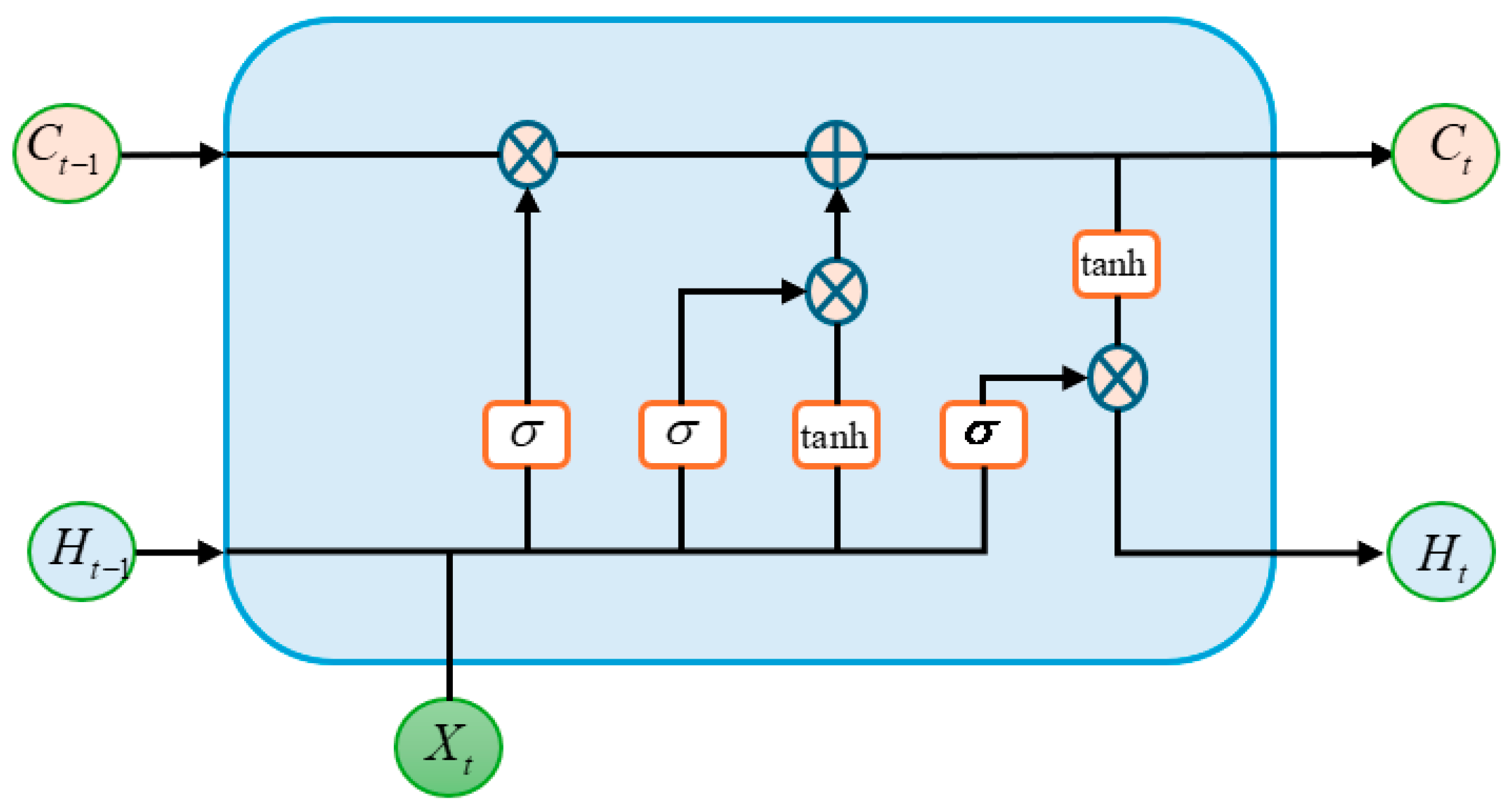 . This mechanism allows LSTM to selectively retain long-term dependent available information, discard low value data, and effectively process complex sequence data. The calculation formula is expressed as follows:
