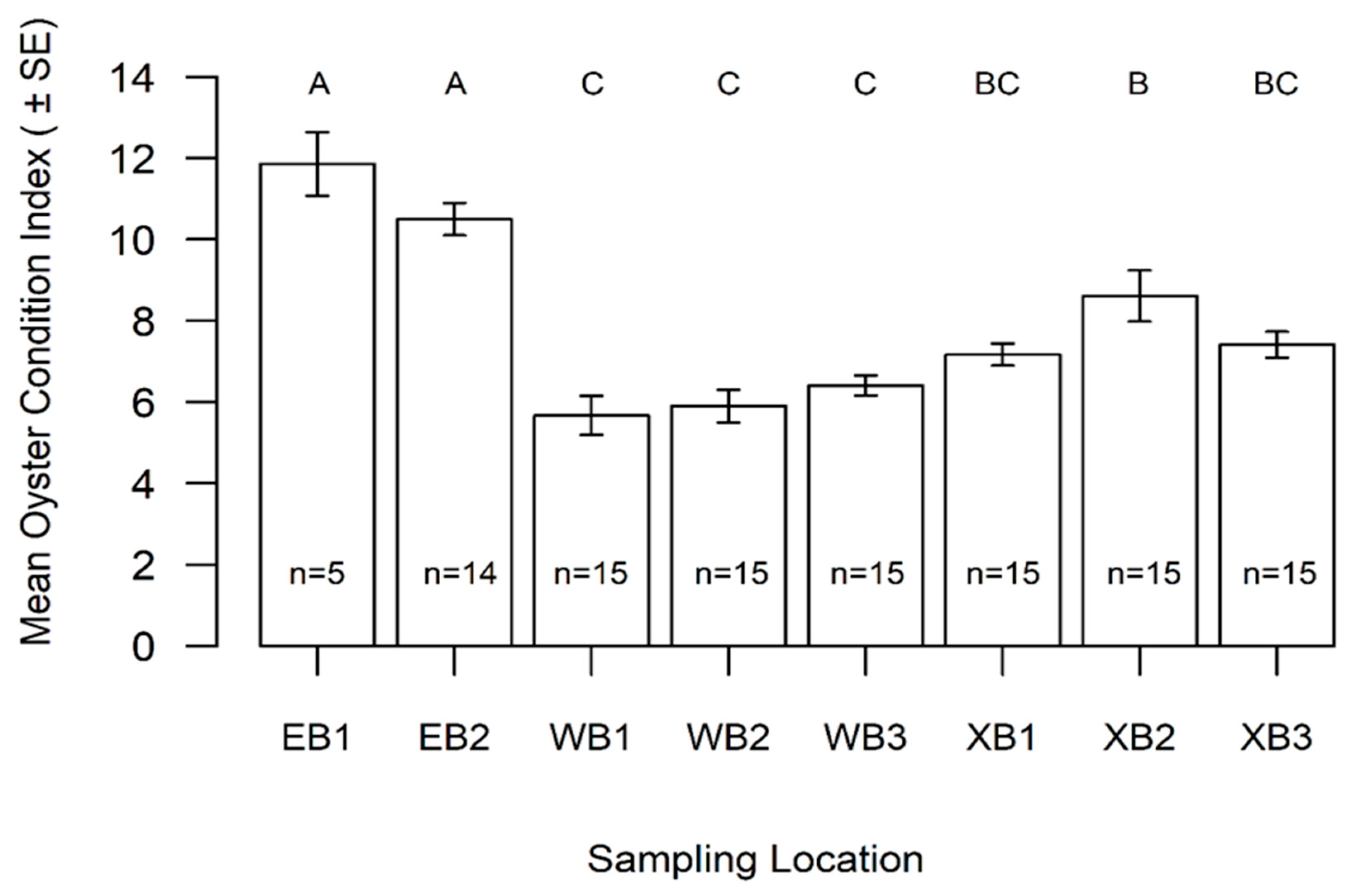 2.5. Condition Index Analysis: Oyster Health Proxy