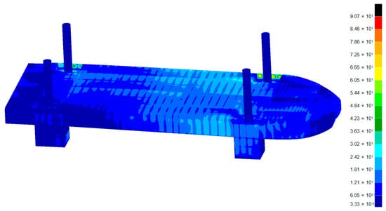 This trend can also be verified by the stress responses in Figure 12: the maximum stress response under the standing condition is 32.8 MPa, whereas that under the sailing condition is 26.2 MPa. The difference between the two results in distinct damage distributions.