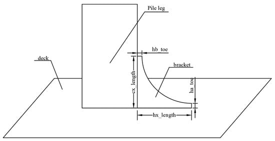 The free edge of the bracket was defined as either an elliptical arc or a circular arc. The transverse length, vertical height, and toe height of the bracket were adopted as the controlling parameters for the bracket geometry, while the bracket thickness was also included as a design variable for comprehensive consideration. When the transverse length equals the vertical height, the bracket becomes a circular-arc bracket.