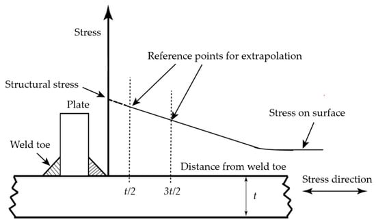 where is the toe stress, and and are the principal stress at the positions located t/2 and 3t/2 away from the weld toe.