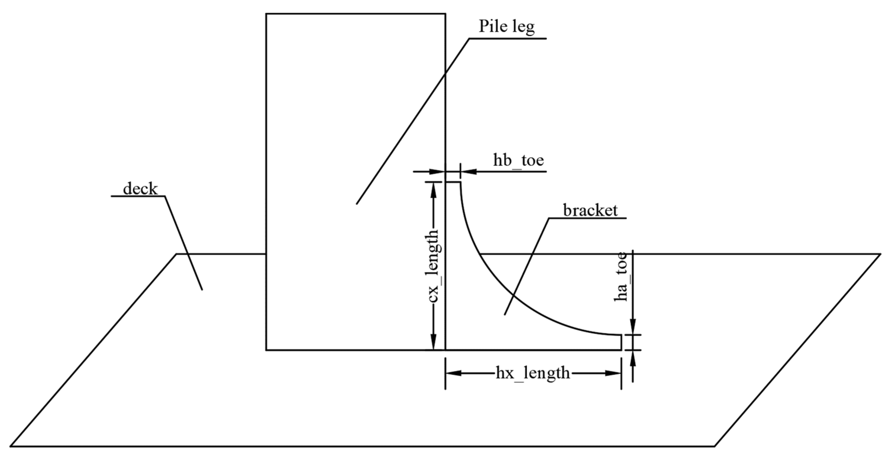 This study primarily focuses on calculating and analyzing the fatigue damage at the hotspot of the bracket toe at the root of the pile-support frame. During fatigue calculations, the finite element mesh near the hotspot should be sufficiently refined to capture variations in the stress gradient.