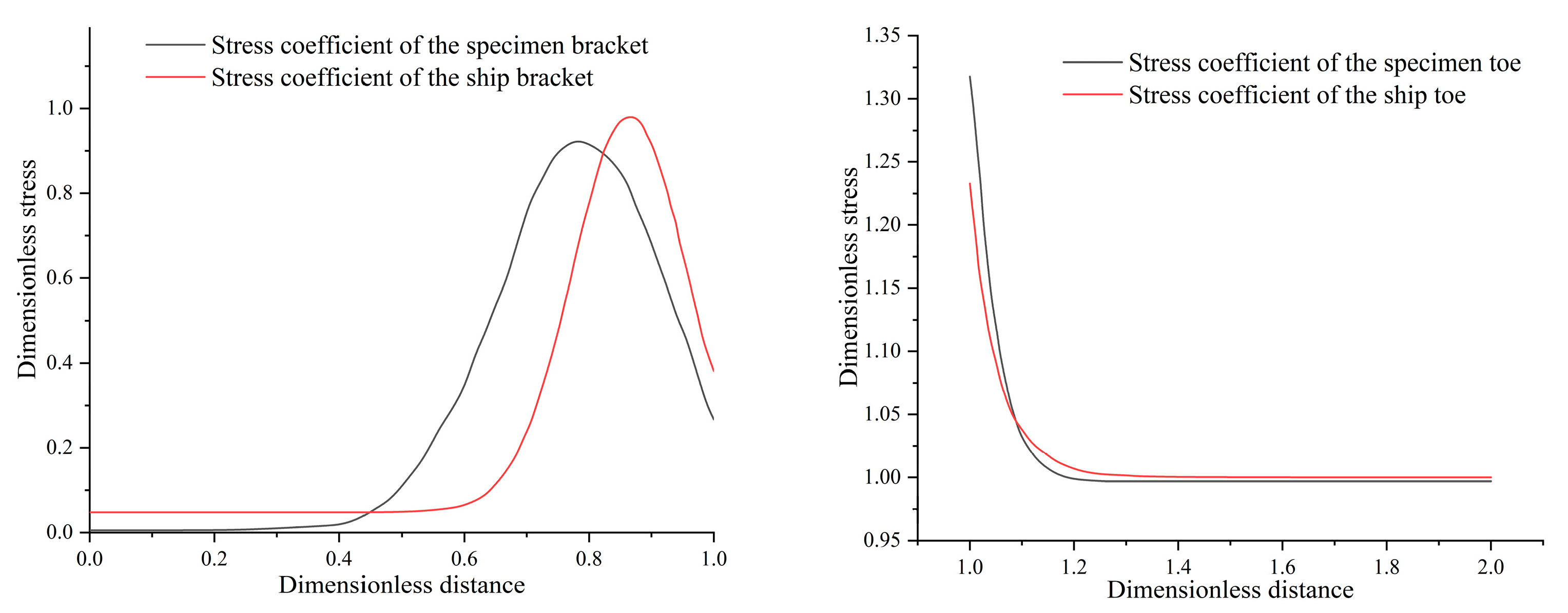 In Patran 2019, the water pressure was applied, and the inertia release method was used to calculate the structural response. After obtaining the stress response distribution of the structure, the interpolation method described in Equation (5) and illustrated in