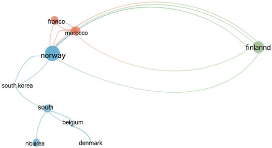Figure 4 also visualizes the clustering of countries using different colors, indicating stronger citation relationships within the same cluster. The largest cluster includes Norway, South Korea, and the United States. The second-largest cluster comprises the Netherlands, Finland, and Australia. A smaller cluster includes Belgium, Canada, Denmark, France, Japan, and Morocco.
