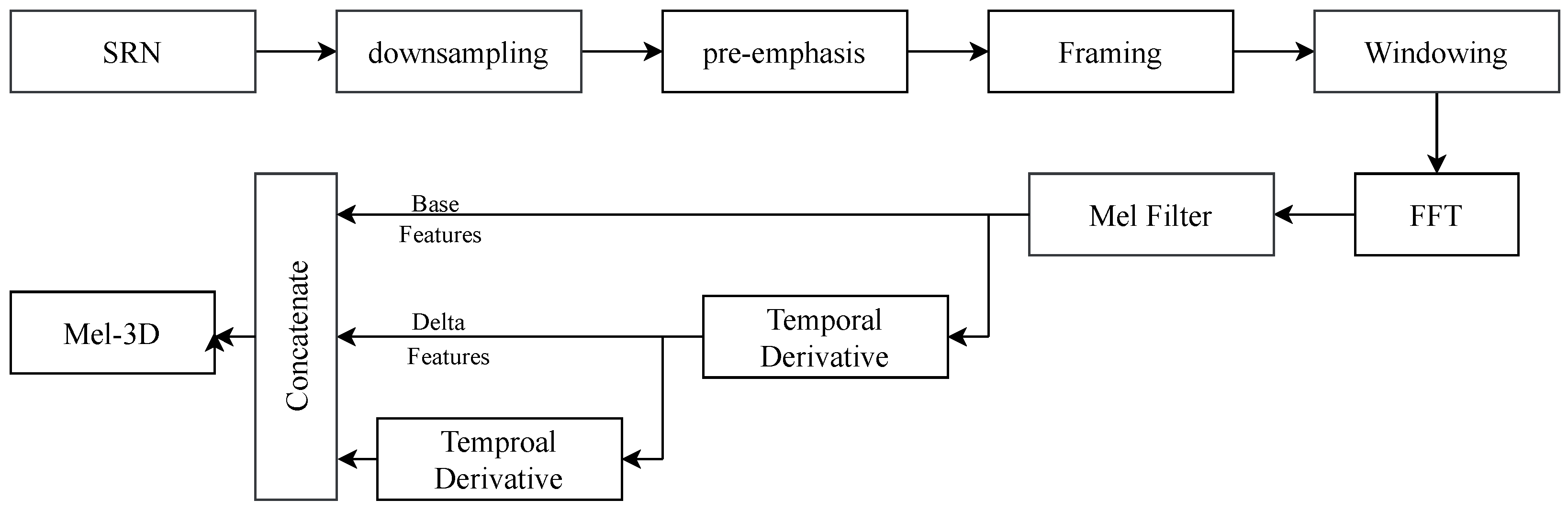 | Frequency Range (Hz) | Pre-Emphasis Coefficient | Number of Filter Banks | Hop Length | N-fft | Dimension |