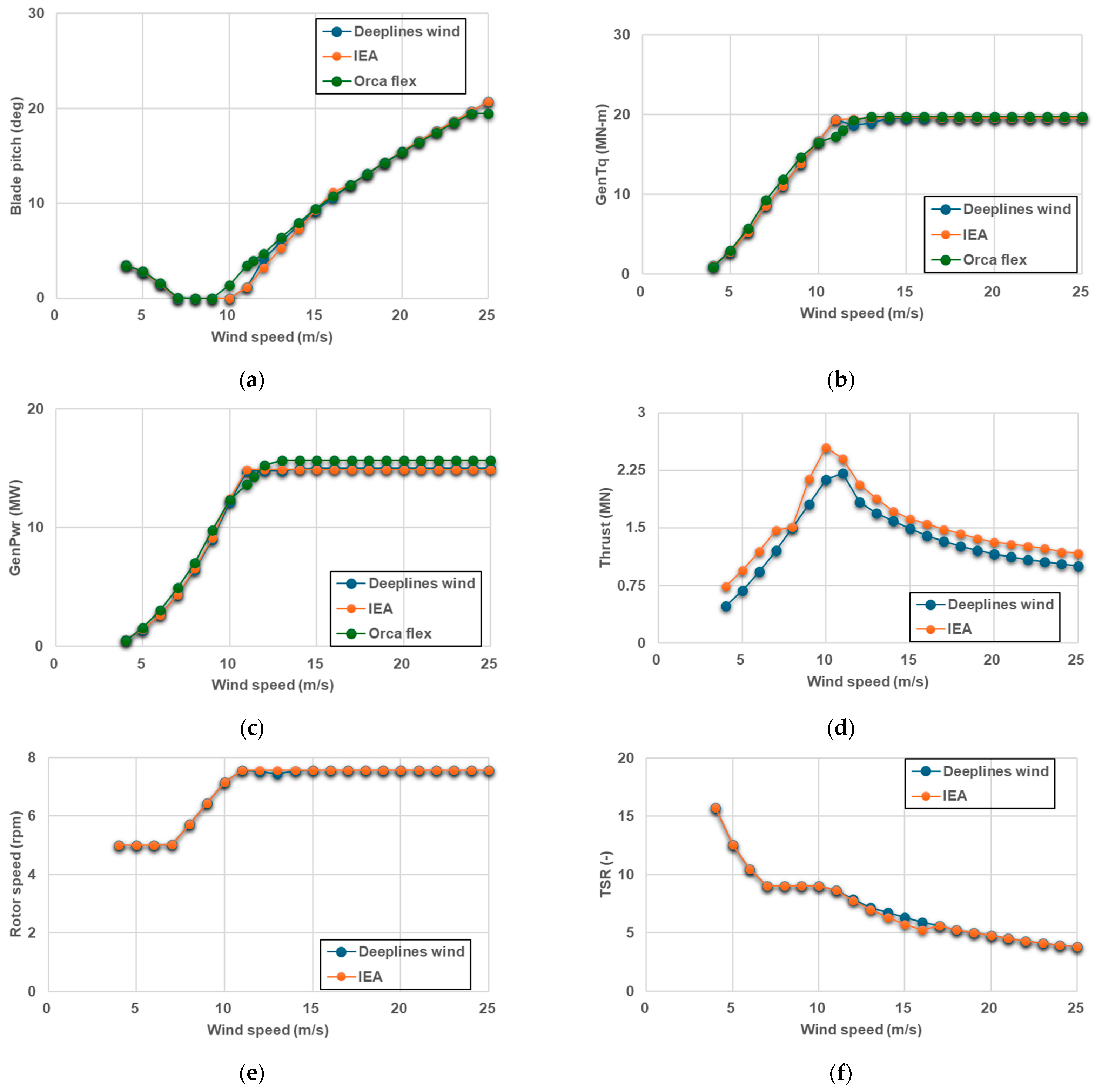 3.2. Constant-Wind Production Benchmark (Deeplines Wind vs. OrcaFlex)