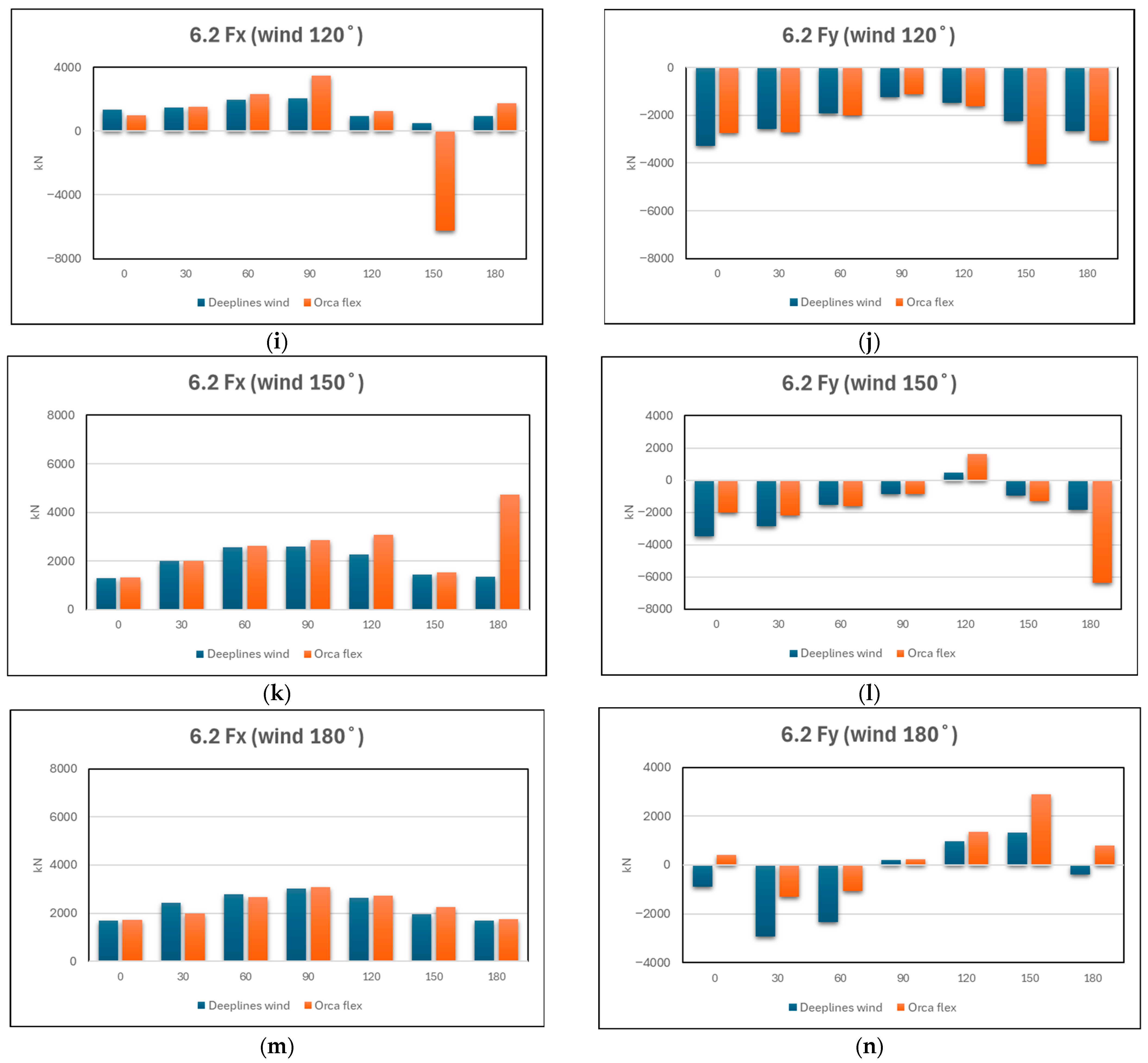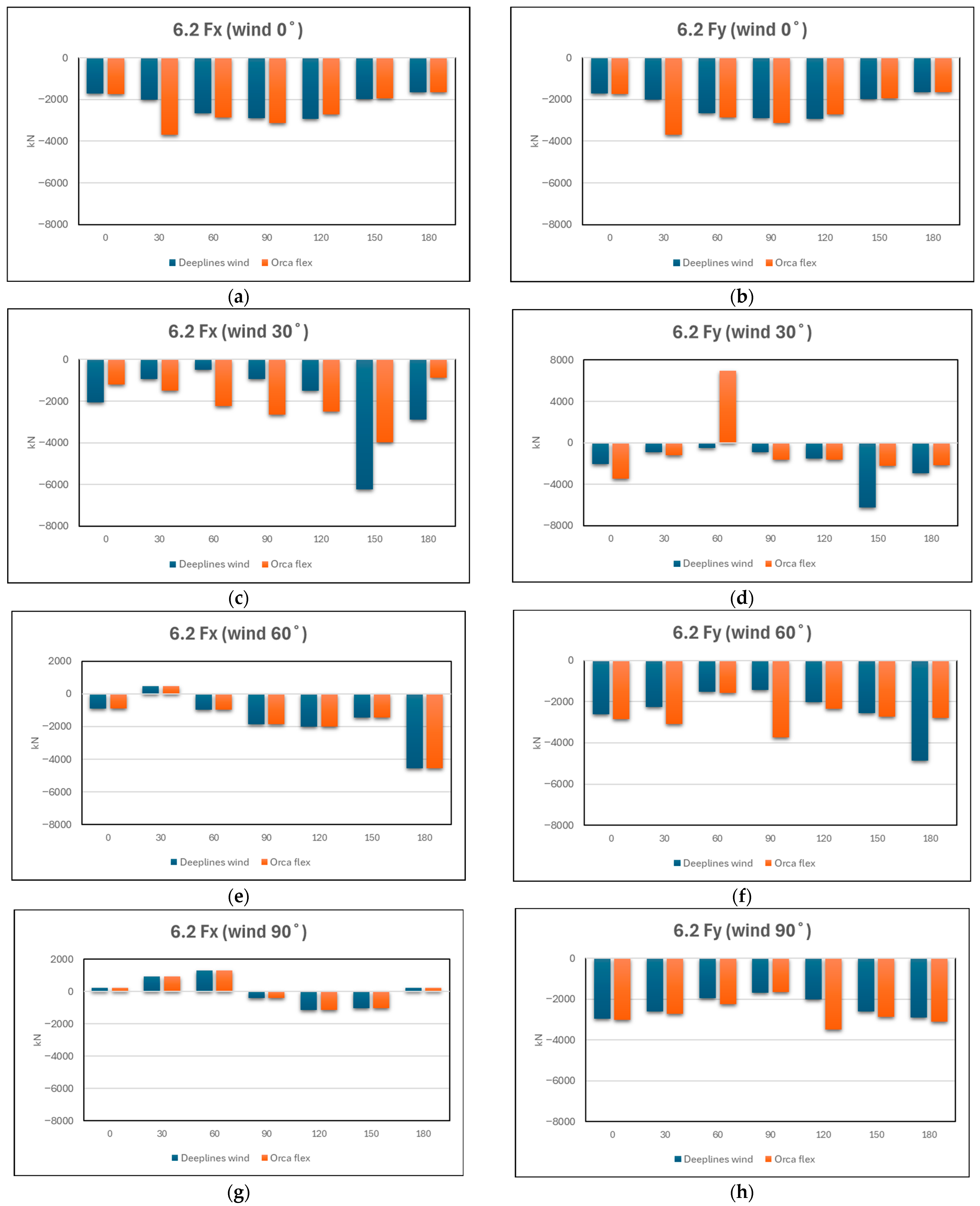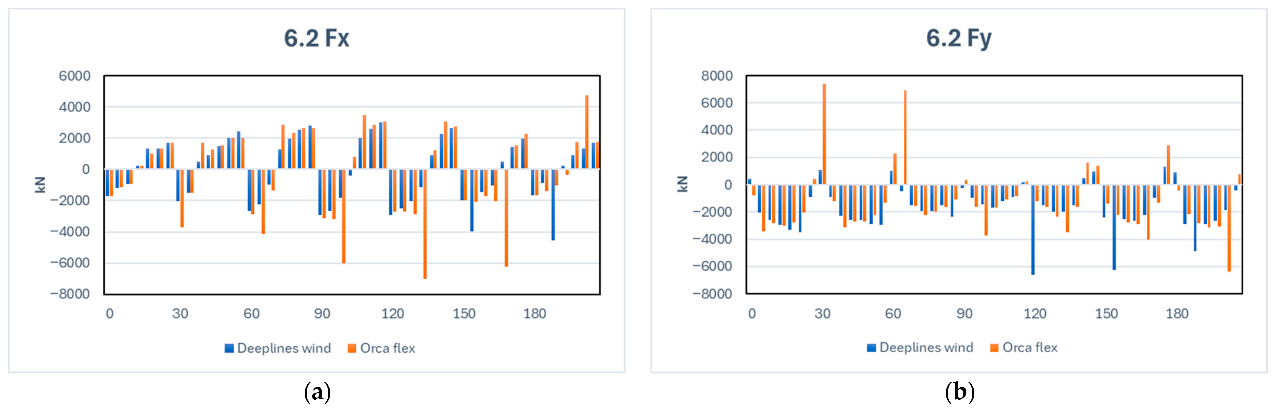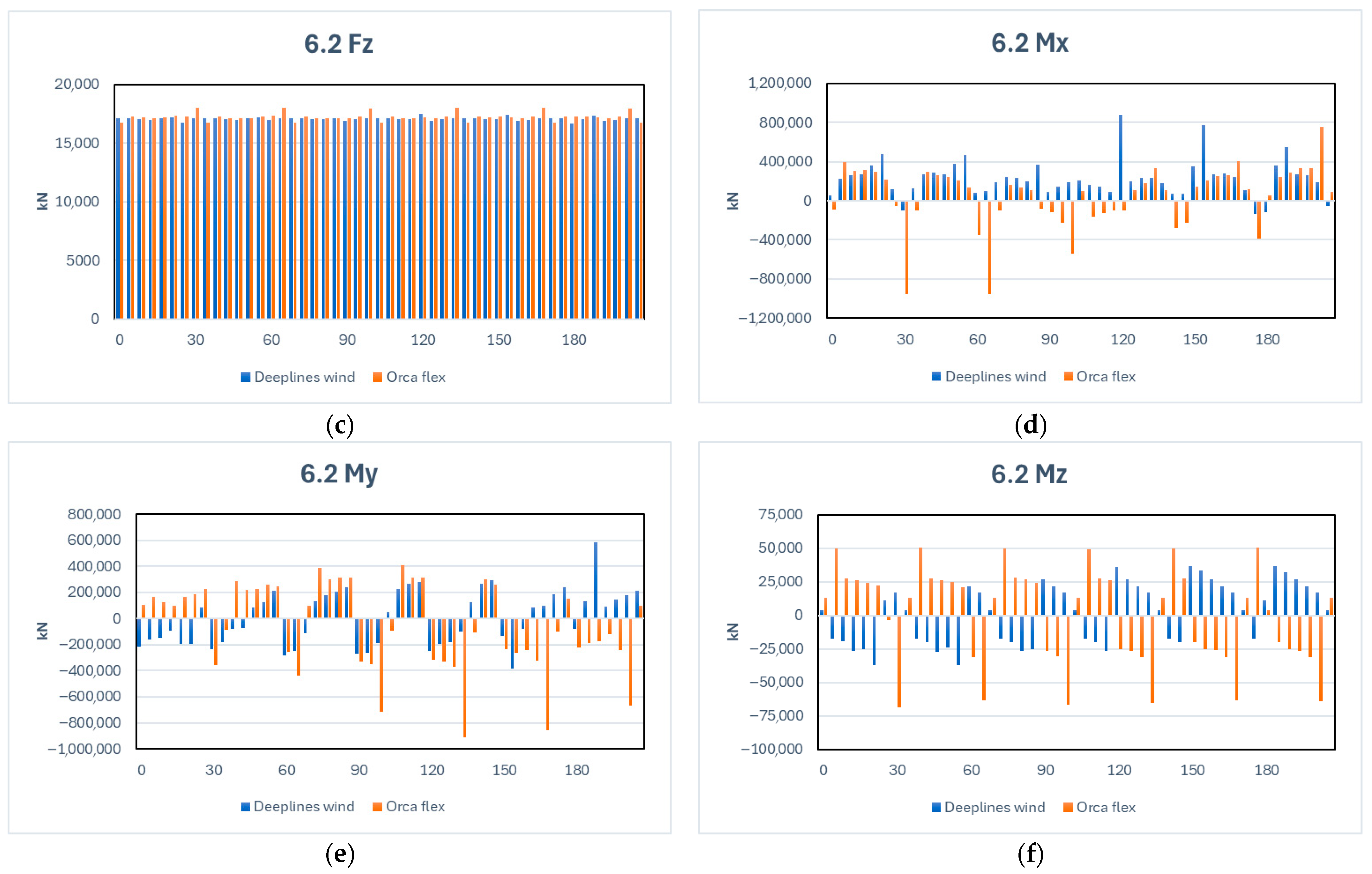 - Papi, F.; Troise, G.; Behrens de Luna, R.; Saverin, J.; Perez-Becker, S.; Marten, D.; Ducasse, M.-L.; Bianchini, A. Quantifying the Impact of Modeling Fidelity on Different Substructure Concepts—Part 2: Code-to-Code Comparison in Realistic Environmental Conditions. Wind. Energy Sci. 2024, 9, 981–1004. [Google Scholar] [CrossRef]