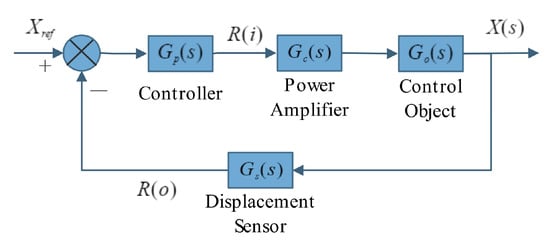 Through system identification, with voltage R(i) as the input and displacement R(o) as the output, the transfer function of the signal passing through the power amplifier, HMB, and displacement sensor will be obtained. The new system control principle is shown in Figure 3.