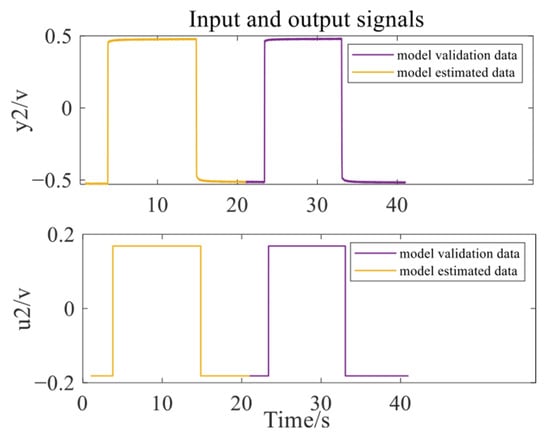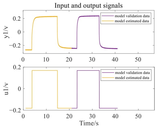 The total data length is 40 s, with all data divided into two halves. The first 20 s of data are used as model estimation data, and the last 20 s of data are used as model validation data, as shown in Figure 9 and Figure 10.