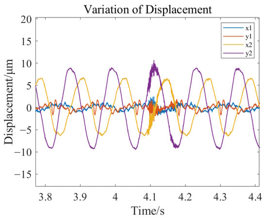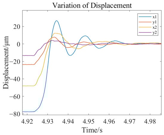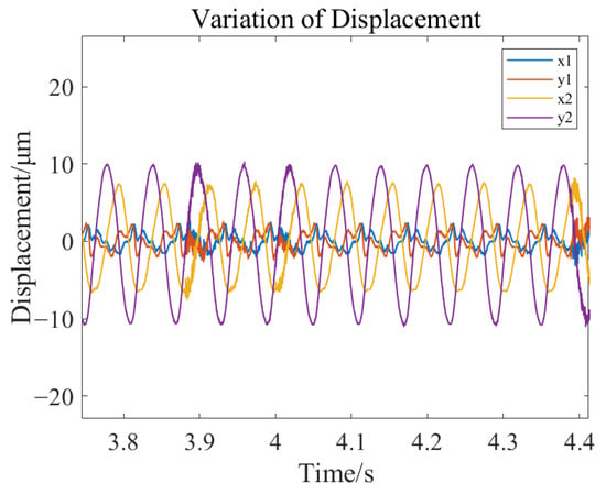The results of the rotor dynamic stability experiment indicate that under operating conditions of 500 rpm and 1000 rpm, the rotor is capable of achieving stable levitation operation. The maximum displacement variation is less than 11 μm, which is significantly smaller than the air gap size of the magnetic bearings, fully meeting the engineering requirements for position control accuracy.