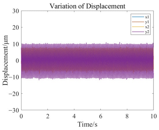 According to the simulation results, under the influence of external disturbance forces, the variation in rotor displacement does not exceed the system’s required threshold, and the control parameters are able to maintain stable levitation of the rotor.