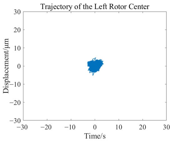 Under the condition of stable rotor levitation, the motor speed was altered. When the speed stabilized at 1000 rpm, the changes in rotor displacement are shown in Figure 34 and Figure 35. The trajectory of the left rotor axis is depicted in Figure 36, and the trajectory of the right rotor axis is shown in Figure 37.