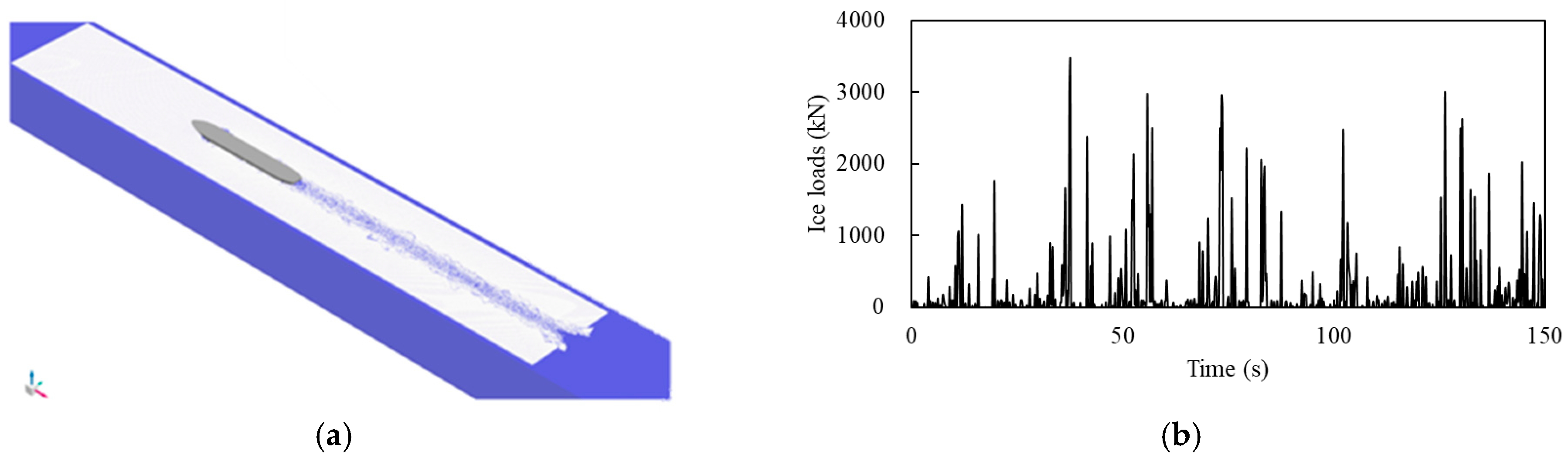 - Kim, J.H.; Kim, Y. Numerical simulation on the ice-induced fatigue damage of ship structural members in broken ice fields. Mar. Struct. 2019, 66, 83–105. [Google Scholar] [CrossRef]