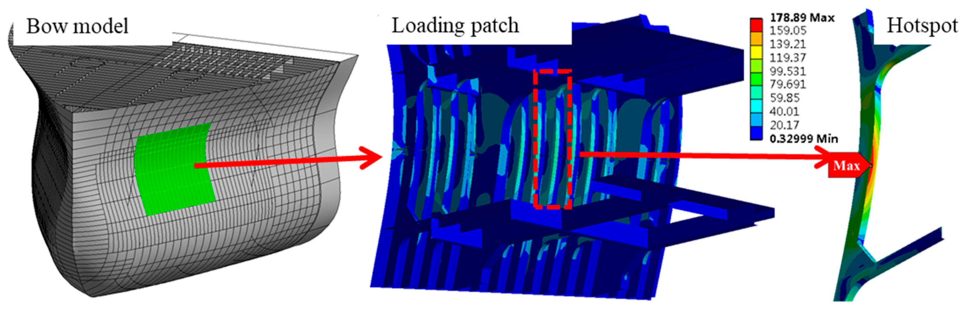 - The ice load simulations and fatigue analyses are based on idealized assumptions and a limited range of operational and environmental parameters, which may not capture all realistic ice–ship interaction scenarios.