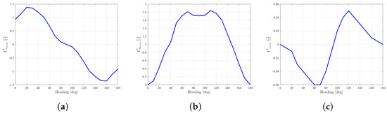 Wind load coefficients of the ASV in different headings. (a) . (b) . (c) .
