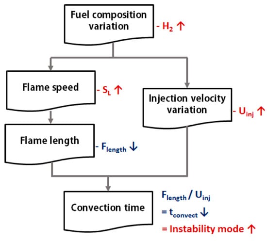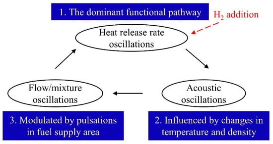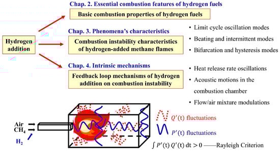 Previous research has primarily focused on describing the oscillation behavior of hydrogen-rich methane flames and the instability of high-hydrogen combustion [,]. However, there remains a lack of comprehensive understanding regarding the effects of hydrogen addition on combustion instability, particularly concerning the characteristics and underlying mechanisms of these phenomena. Thus, it is essential to conduct an in-depth review of the phenomena and mechanisms related to hydrogen combustion that have emerged in recent years.