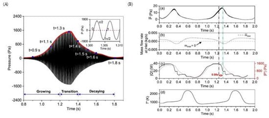 Combustion instability (CI), also known as thermoacoustic instability [], has been widely reported in low-emission gas turbine combustion systems, particularly in DLE combustors. These pressure oscillations can reach high amplitudes, disrupting normal operation and potentially leading to system failures [,], as illustrated in Figure 7.