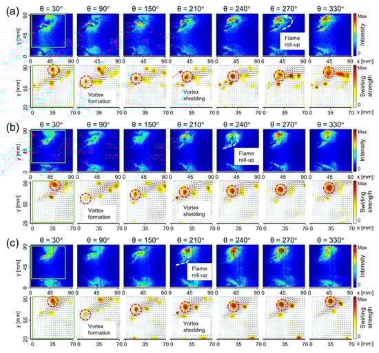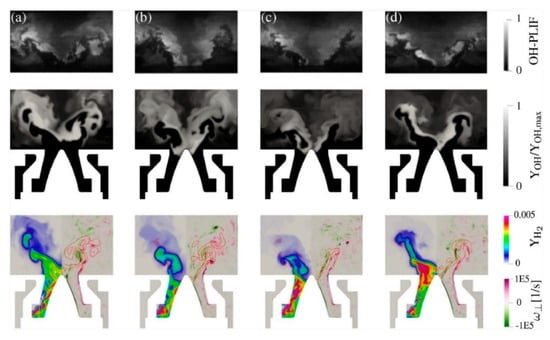 - Shanbhogue, S.J.; Sanusi, Y.S.; Taamallah, S.; Habib, M.A.; Mokheimer, E.M.A.; Ghoniem, A.F. Flame macrostructures, combustion instability and extinction strain scaling in swirl-stabilized premixed CH4/H2 combustion. Combust. Flame 2016, 163, 494–507. [Google Scholar] [CrossRef]