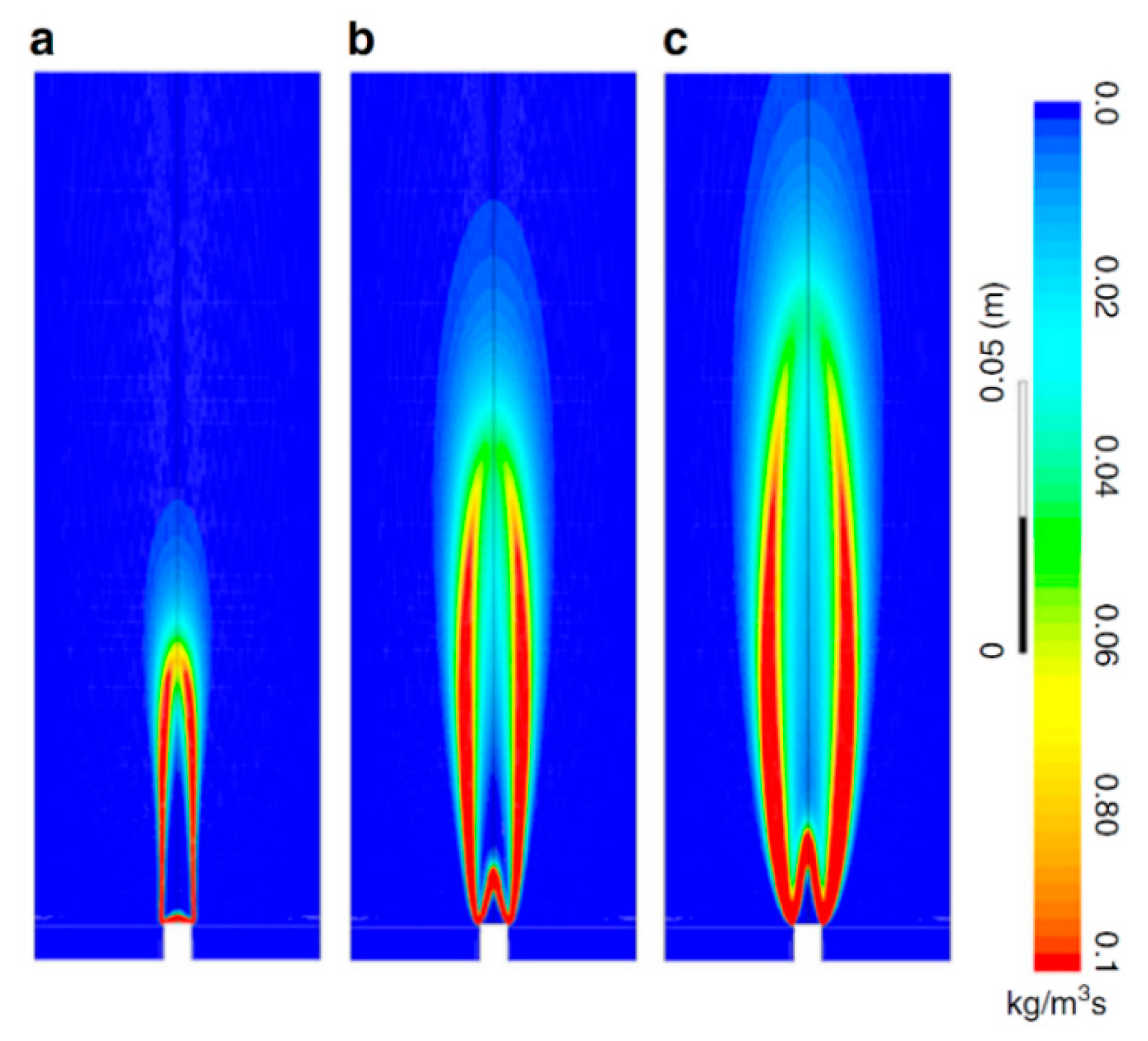 - Nam, H.T.; Lee, S.; Jung, H. Effect of hydrogen addition on combustion and thermal characteristics of impinging non-premixed jet flames for various heating value gases. Case Stud. Therm. Eng. 2023, 49, 103173. [Google Scholar] [CrossRef]
