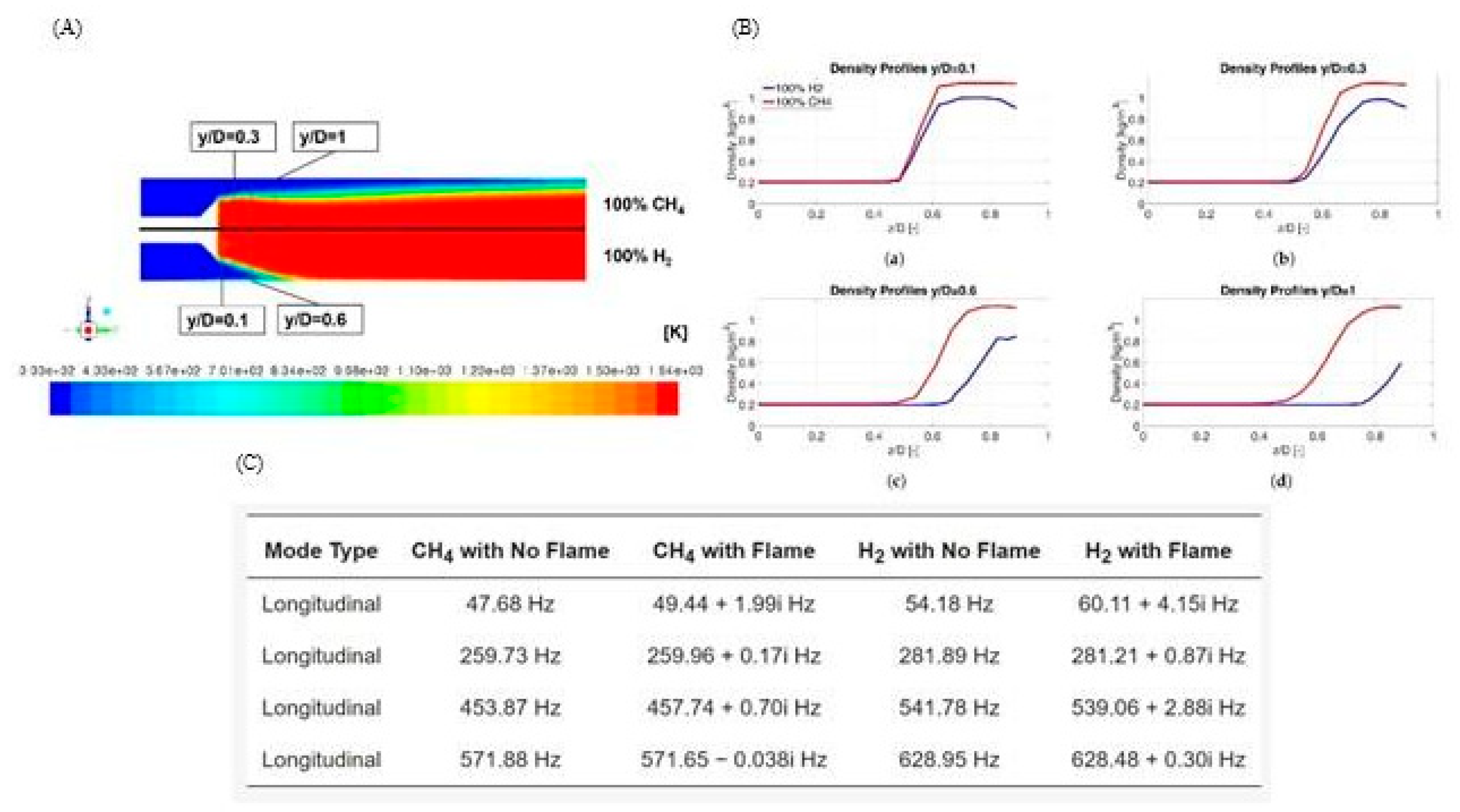 - Choi, J.; Lee, W.; Rajasegar, R.; Lee, T.; Yoo, J. Effects of hydrogen enhancement on mesoscale burner array flame stability under acoustic perturbations. Int. J. Hydrogen Energy 2021, 46, 37098–37107. [Google Scholar] [CrossRef]