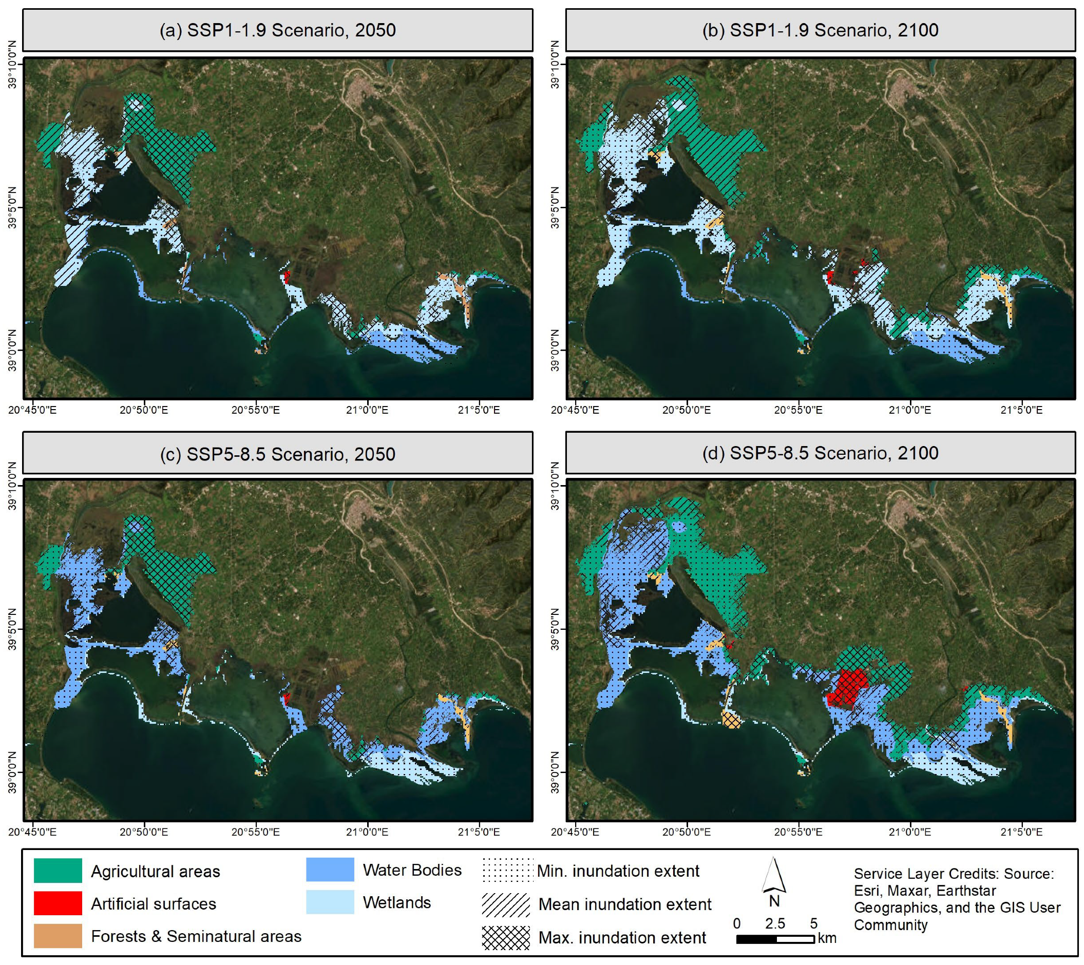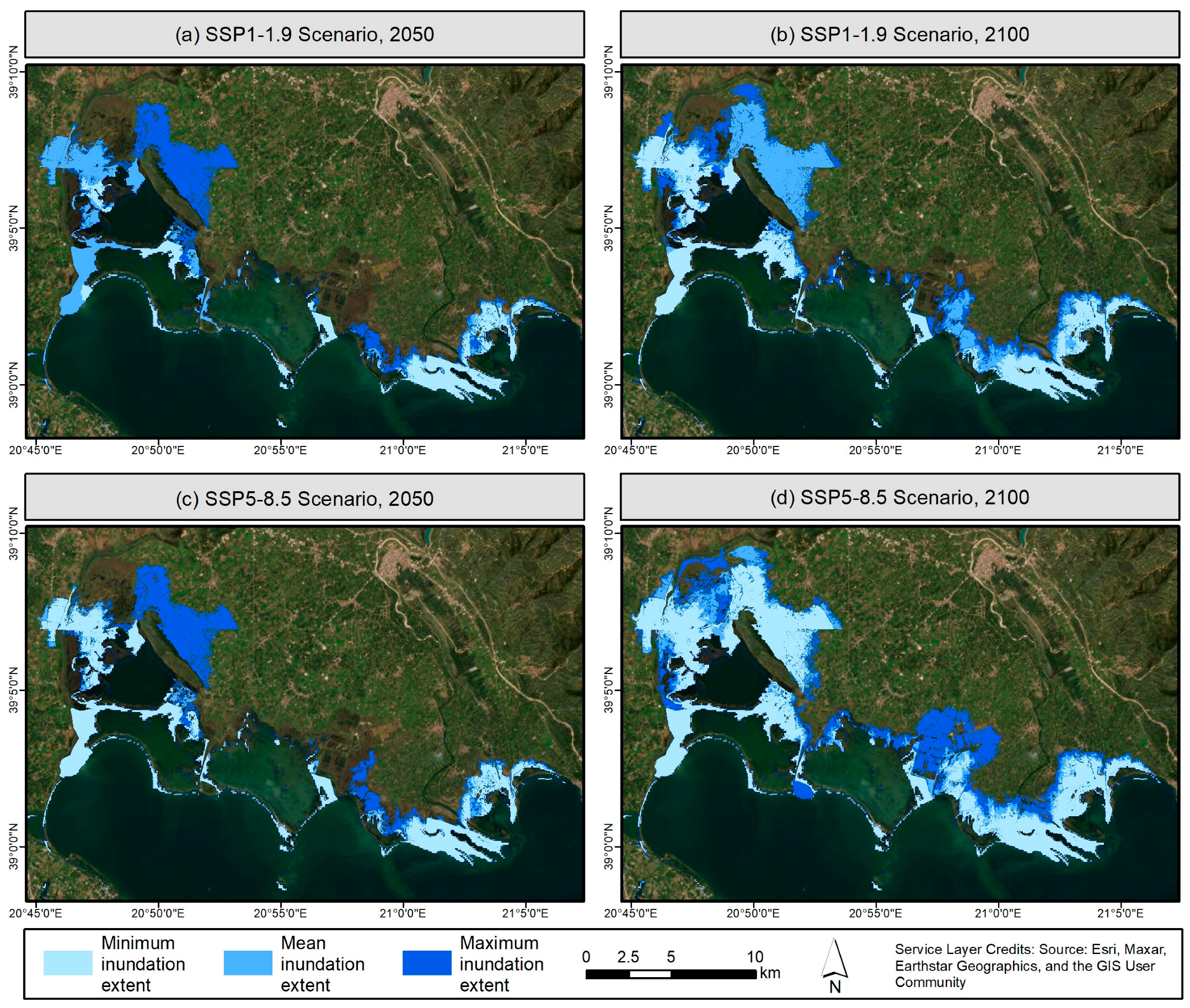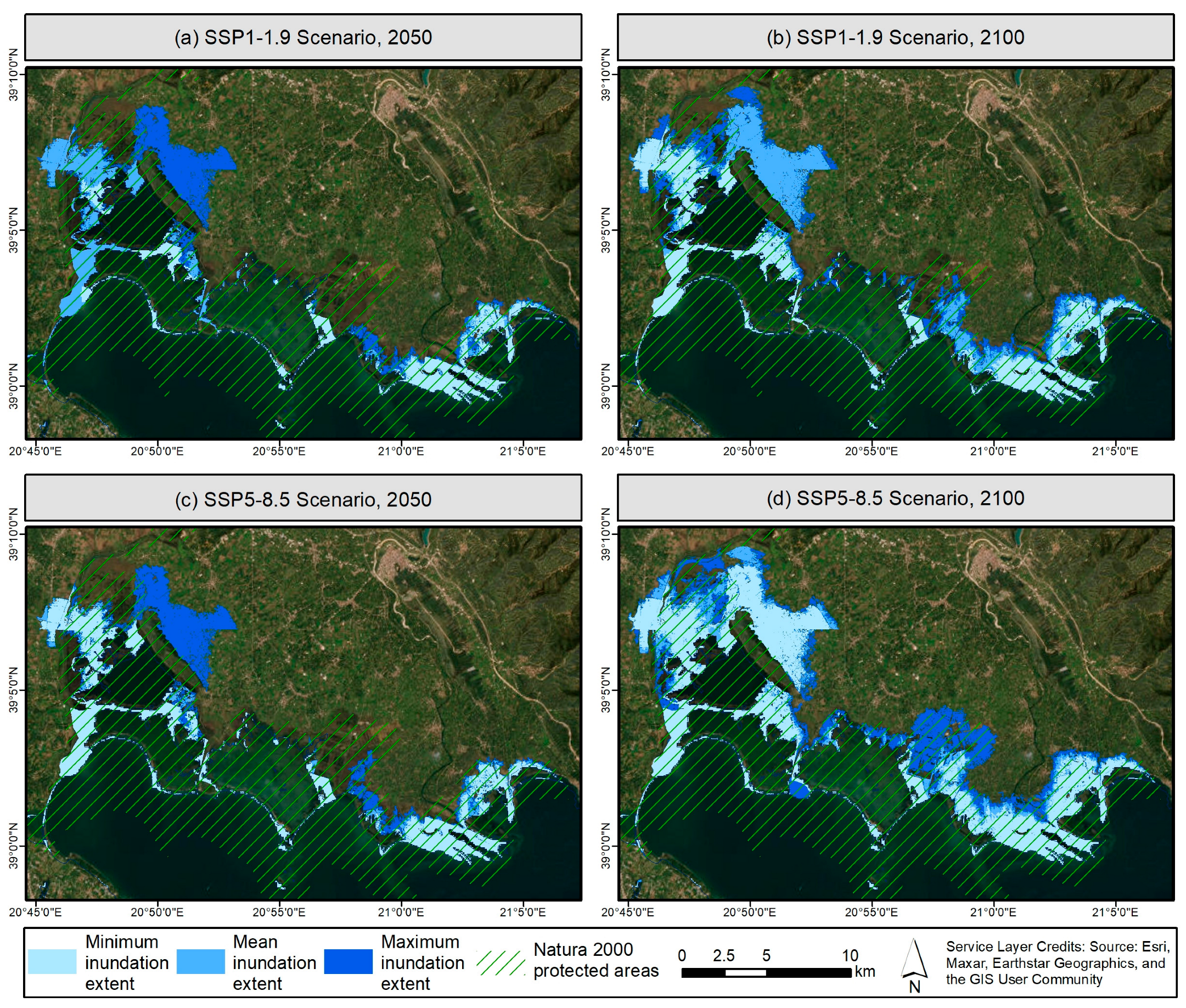 | Sea-level rise projections | NASA Sea-Level Projection Tool (Preveza tide gauge) | Future mean sea-level projections under SSP1-1.9 and SSP5-8.5 | 2020–2150 (relative to 1995–2014 baseline) |