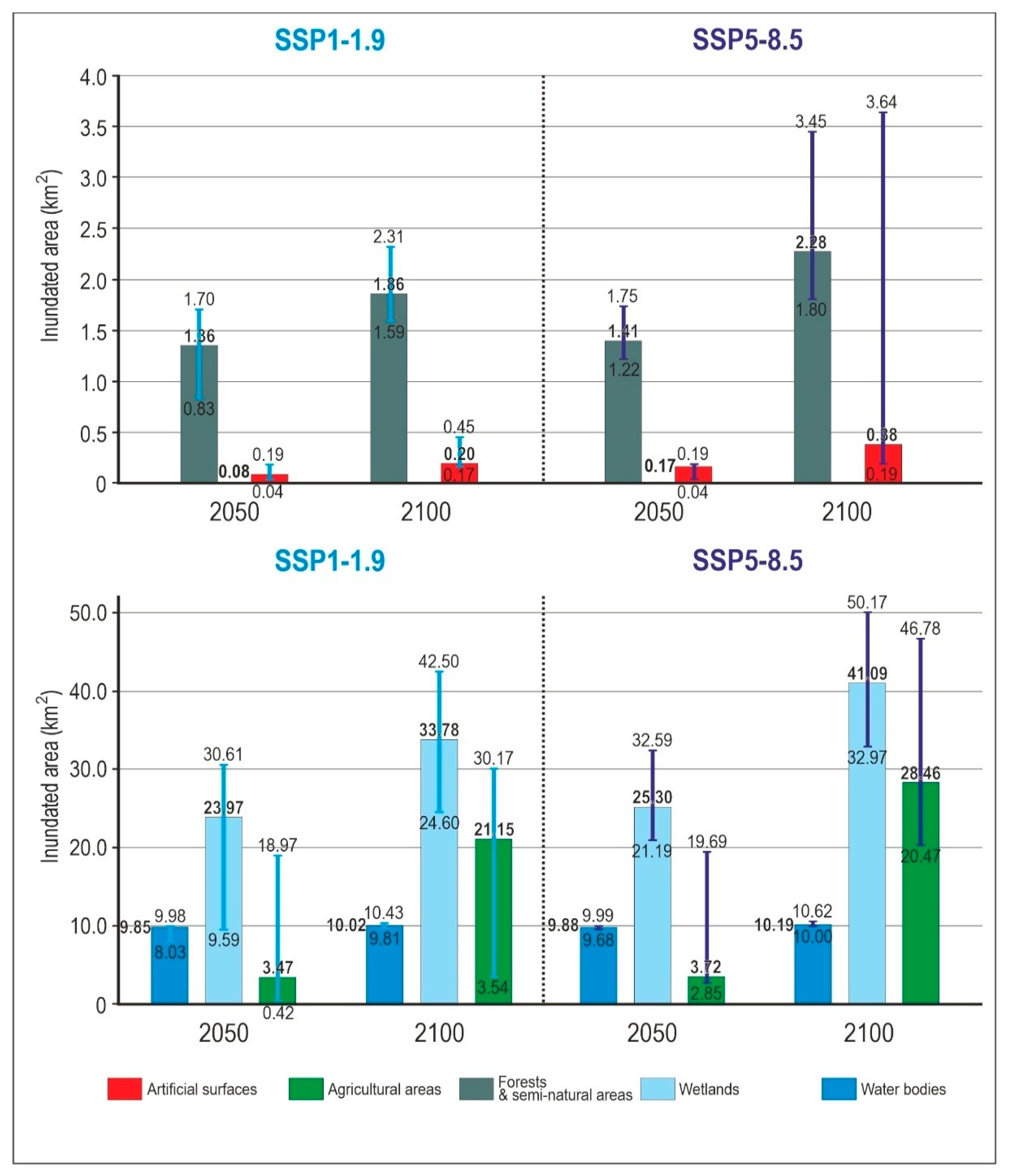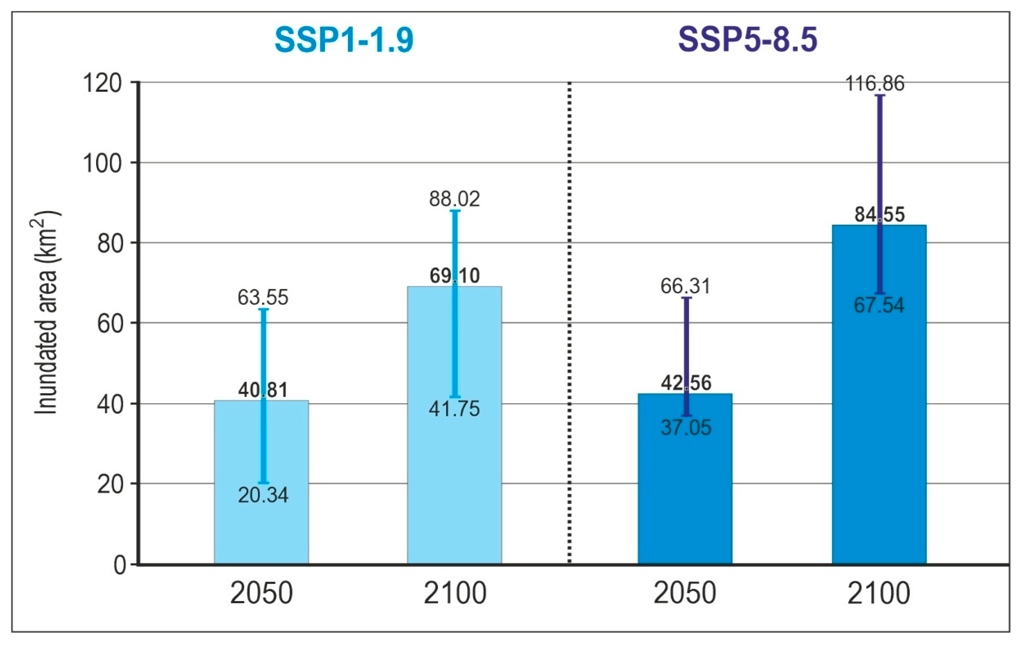 | SSP5-8.5 | 0.24 (0.17–0.33) m | 0.74 (0.56–1.03) m |