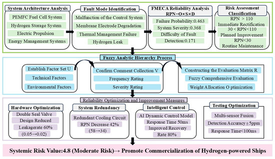 Wang, M.; Han, F.; Li, H.; Zhou, J.; Wang, Z. Reliability and Risk Assessment of Hydrogen-Powered Marine Propulsion Systems Based on the Integrated FAHP-FMECA Framework. J. Mar. Sci. Eng. 2025, 13, 2115. https://doi.org/10.3390/jmse13112115