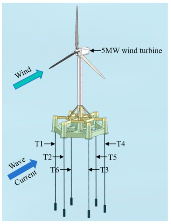- Jia, Z.; Wu, H.; Chen, H.; Li, W.; Li, X.; Lian, J.; He, S.; Zhang, X.; Zhao, Q. Hydrodynamic Response and Tension Leg Failure Performance Analysis of Floating Offshore Wind Turbine with Inclined Tension Legs. Energies 2022, 15, 8584. [Google Scholar] [CrossRef]
