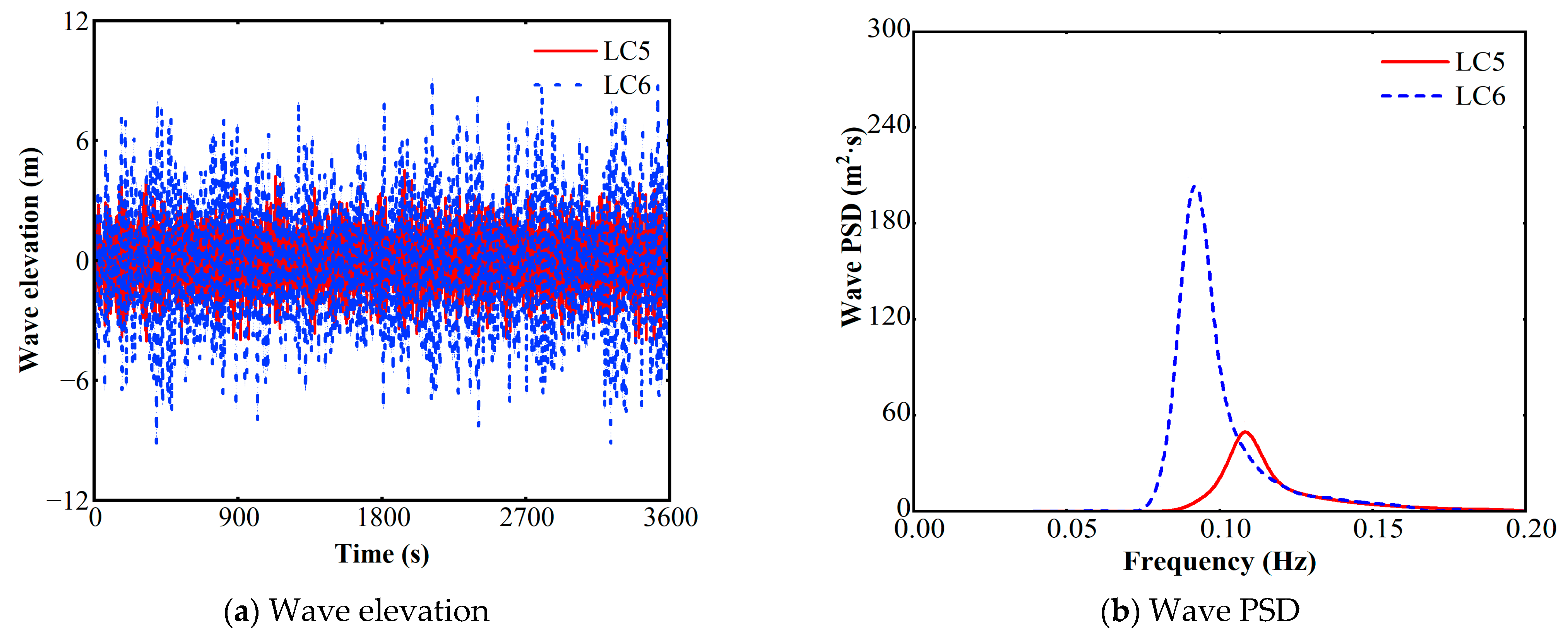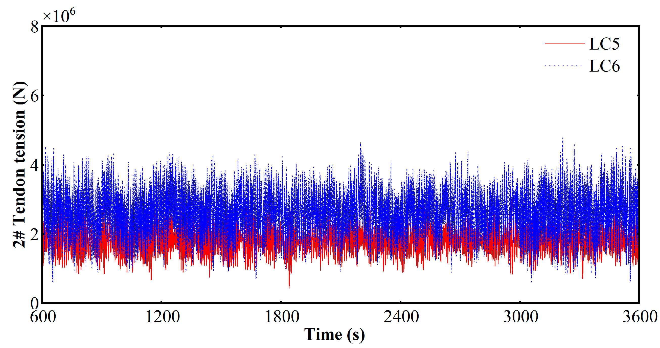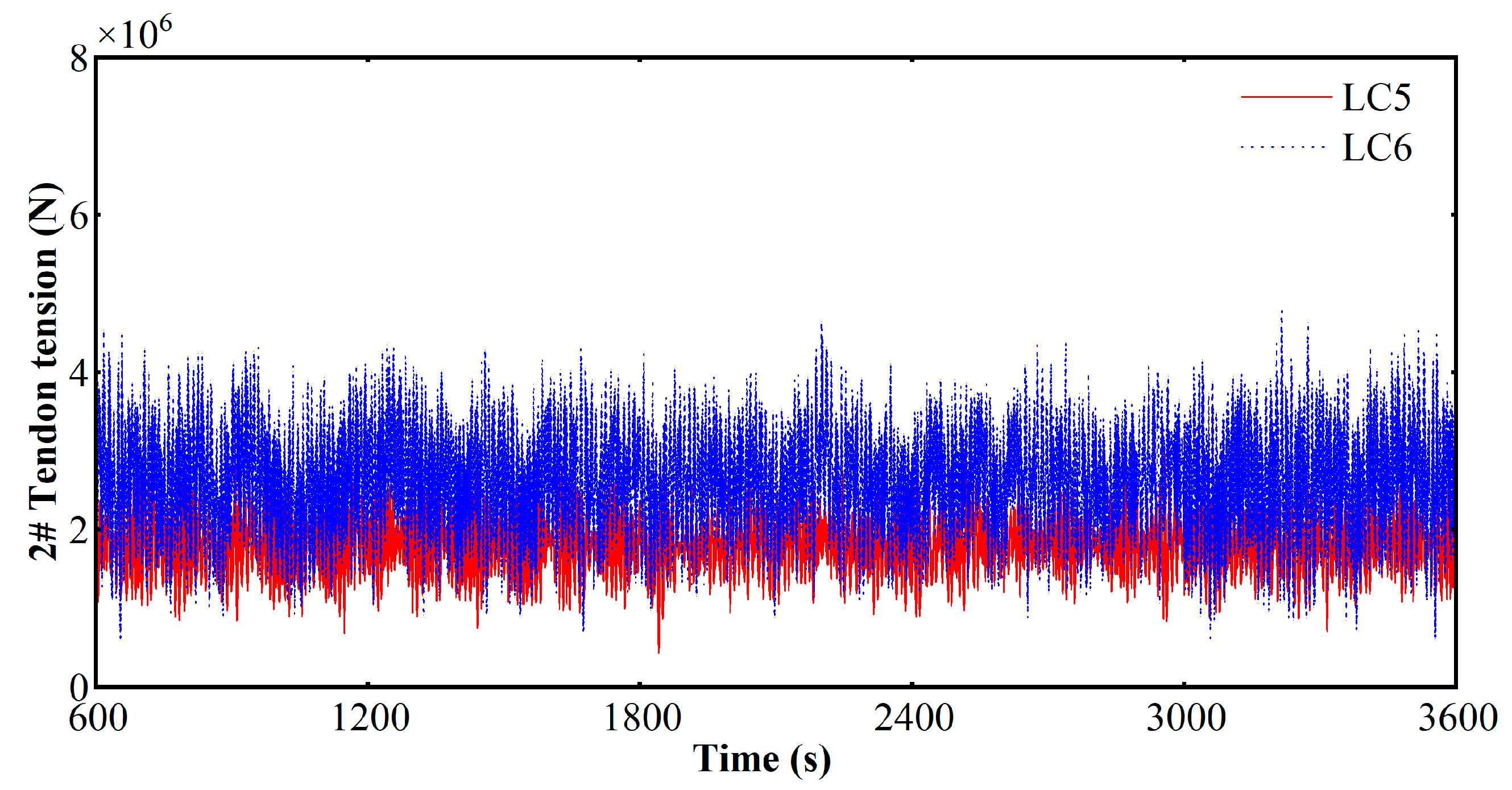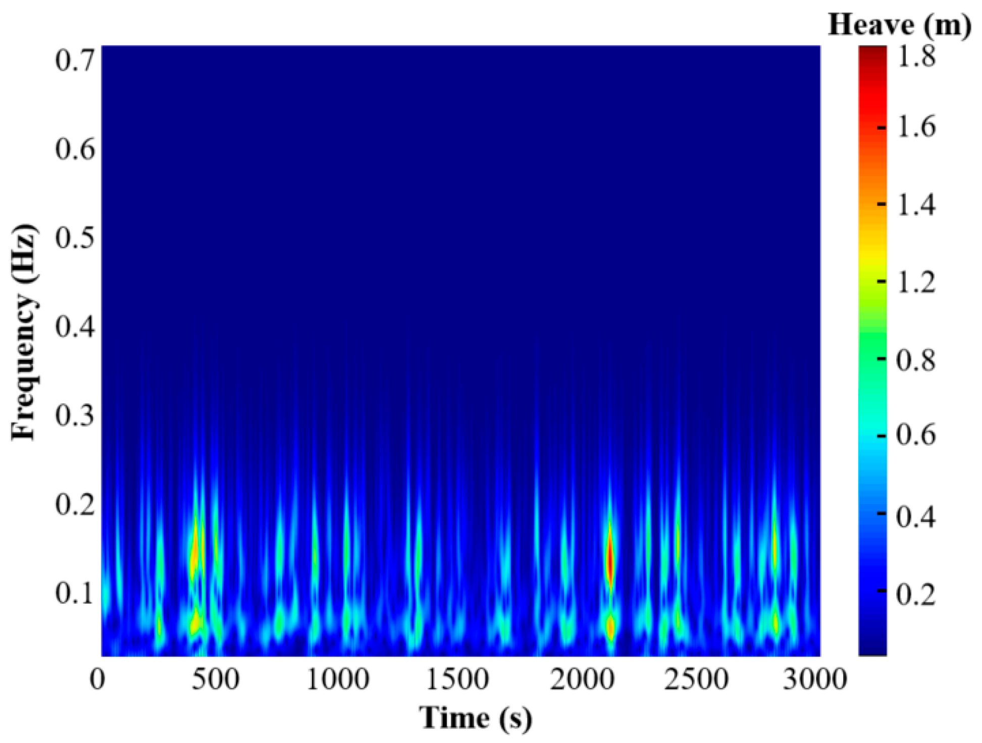 - Time-domain analysis confirms the platform’s robust stability under extreme sea states. In the most severe load case (LC6), maximum motion amplitudes were recorded as 11.19 m (surge), 0.86 m (heave), and 0.28 degrees (pitch), demonstrating excellent station-keeping and rotational stability. This superior stability was further investigated using the CWT, which proved essential for capturing the non-stationary dynamics and transient peak loads that are critical for reliable fatigue sizing.
