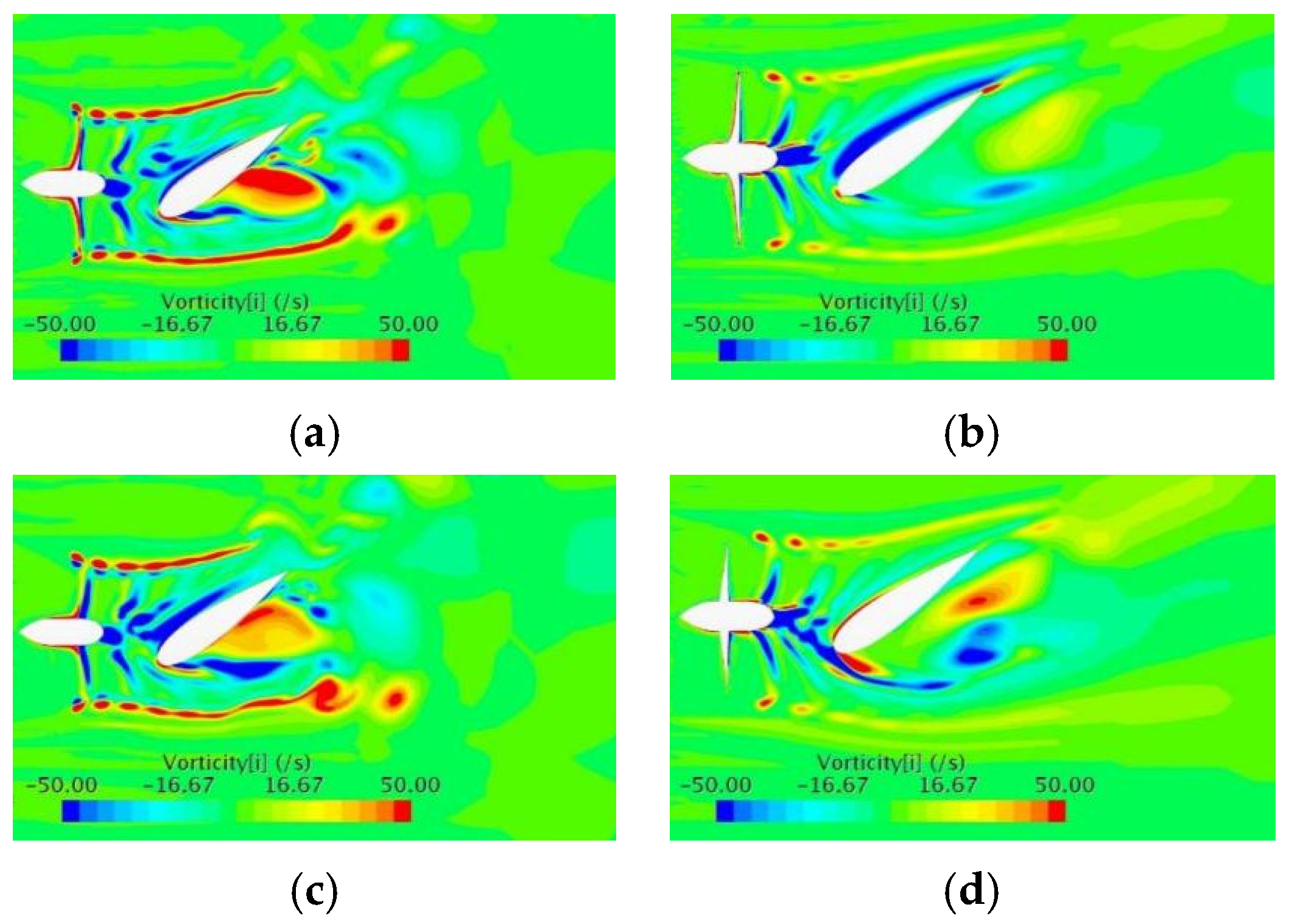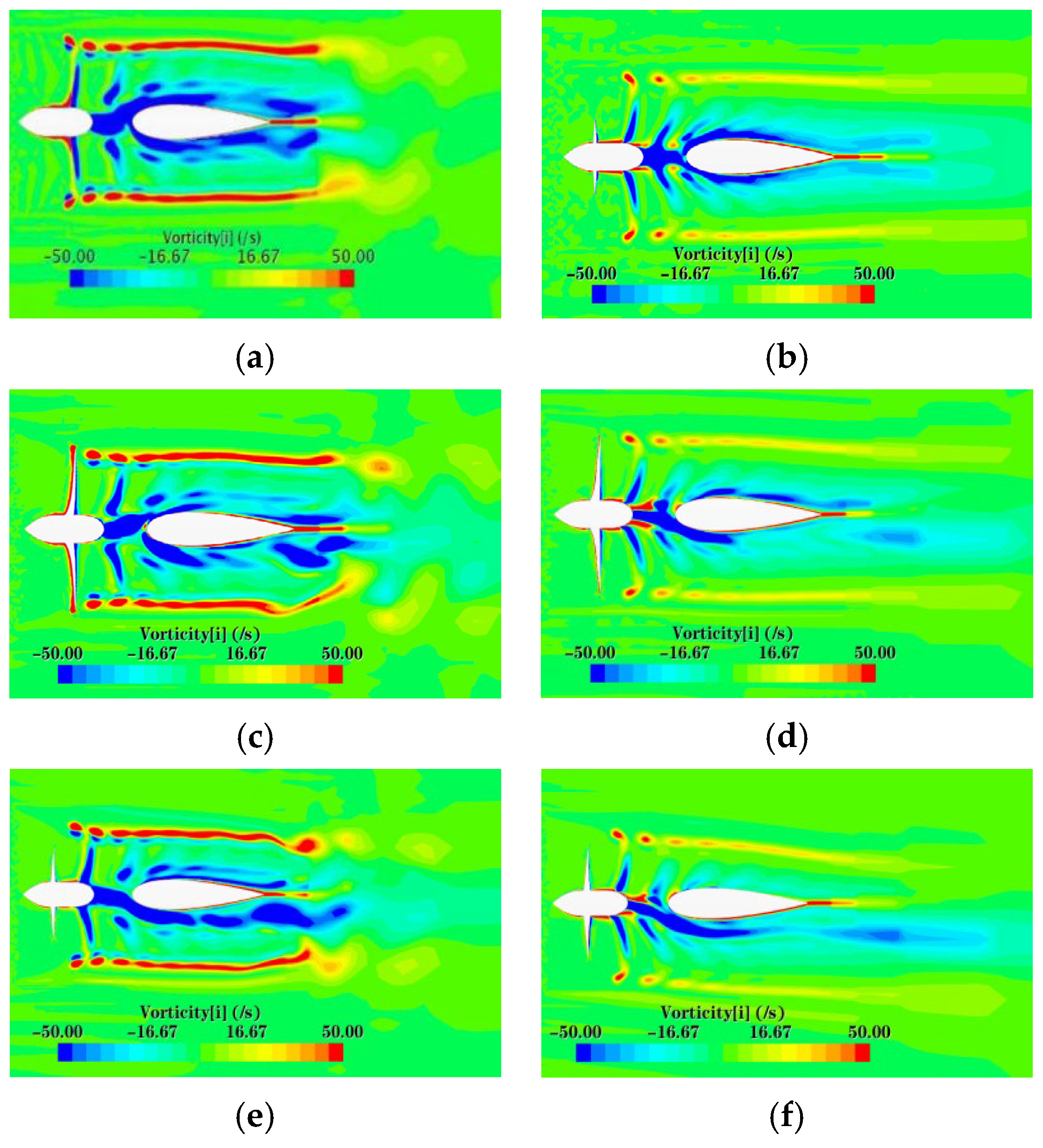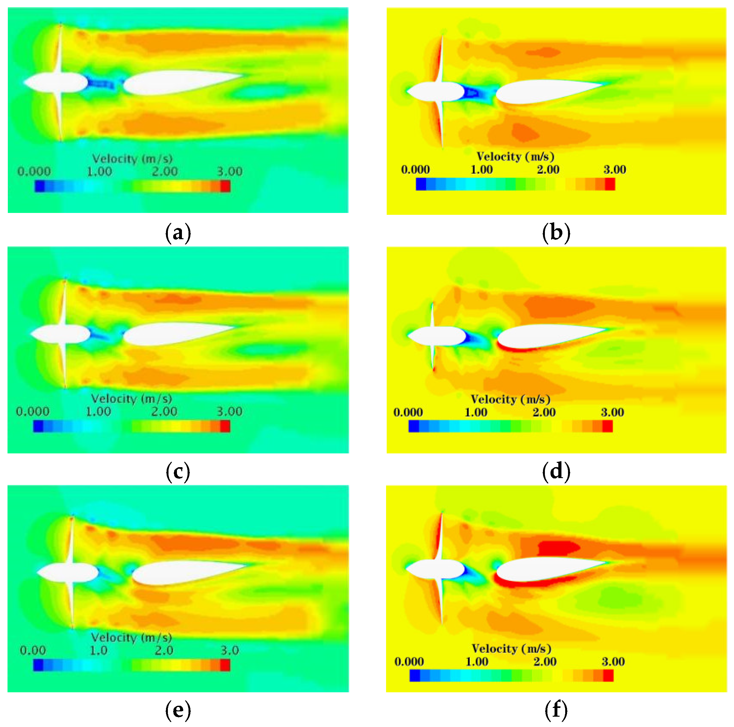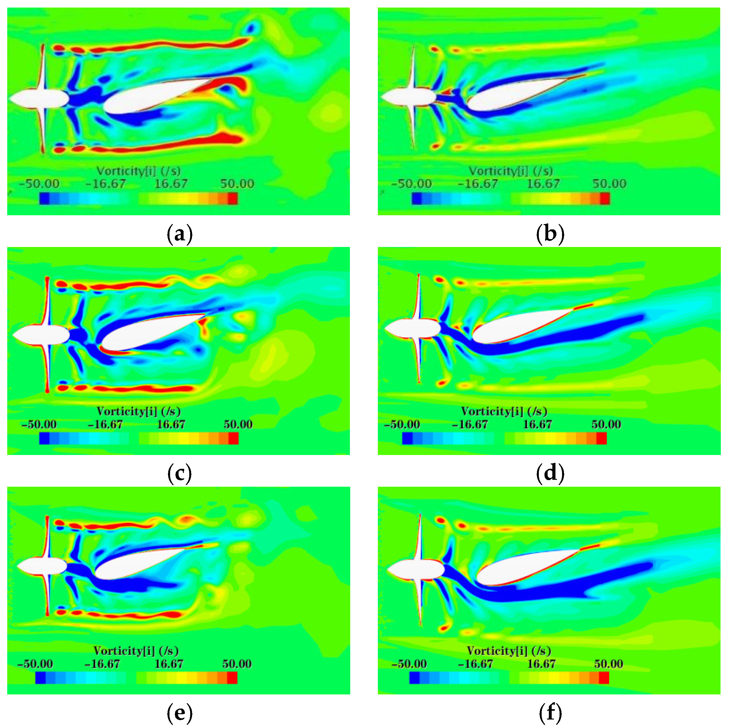 16]. Zhang conducted a numerical analysis of the wake field of a duct propeller/propeller under small-angle oblique flow. As the oblique flow angle increases, the wake field exhibits a more pronounced influence from the angle of attack [