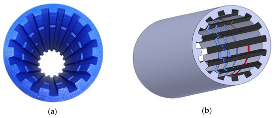 Within the module, (1) denotes the Mecanum wheel hub, which serves to fix the rollers, bear the load, and ensure the proper movement of the Mecanum wheel. Meanwhile, (2) refers to the Mecanum wheel rollers, which are the primary components responsible for the wheel’s movement. They provide the driving force for the device and, crucially, ensure the central alignment of the inspection device within the pipeline. Next, (3) is the hollow-shaft torque motor, responsible for driving the Mecanum wheel, and (4) is the motor sleeve, which connects the rotor of the hollow-shaft torque motor to the Mecanum wheel hub, ensuring the effective transmission of torque from the motor. The synergistic operation of these four components guarantees the central alignment of the inspection device.