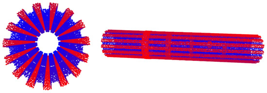 Based on the data presented in the table, the point cloud data were first processed by transforming the X and Y coordinates. The Z coordinate was initialized from 0 and incremented by a value of 0.5 mm for each step, corresponding to the motor’s step length. Finally, three-dimensional reconstruction was performed on the acquired point cloud data of the pipeline’s internal bore, resulting in the point cloud model shown in Figure 11.