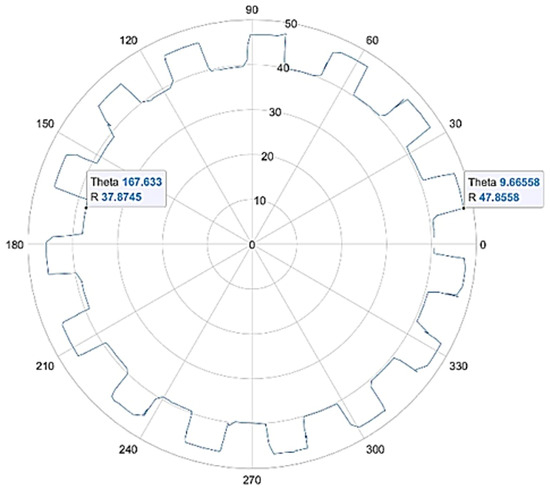By comparing the above fitting results, it can be seen that the detection data from the LiDAR exhibit a certain degree of error. In the aforementioned fitting graphs, the maximum radius is 47.8558 mm and the minimum radius is 37.8745 mm. Through the data comparison between the model dimensions and the maximum measured dimensions, it can be inferred that the maximum error of the internal pipeline inspection device is approximately 3 mm, with an average error of 1.8 mm. The main causes of the error are as follows: the internal pipeline inspection device may experience slight vibration during travel, thereby affecting the detection results obtained from the LiDAR; the data detected by the LiDAR contain some noise and missing data points; and the measurement accuracy of the LiDAR is limited.