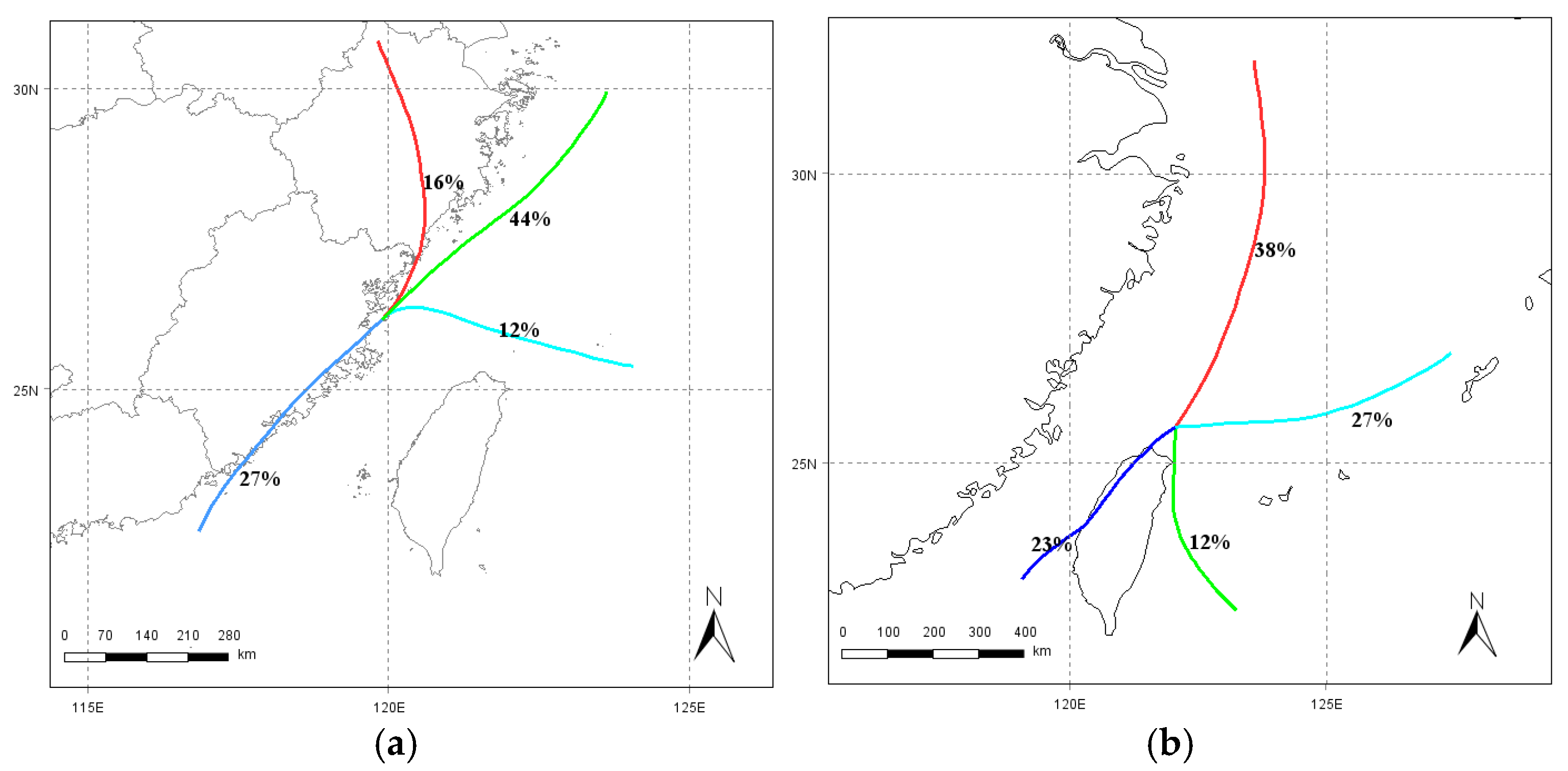 Figure 2b, respectively. Notably, 44% of the air masses in the coastal area originated from coastal Northeast China, 16% from inland Northwest China, 12% from the Northwest Pacific, and 27% from the coastal region of the South China Sea. In contrast, in the marine area, 38% of the air masses originated from northeastern China and inland regions, 27% from the southern East China Sea, 12% from the western Pacific, and 23% from Taiwan and the northern South China Sea. Therefore, it can be inferred that 44% of the air masses in the coastal areas were directly influenced by anthropogenic sources, whereas only 23% of the air masses in the marine area were directly affected by anthropogenic emissions.