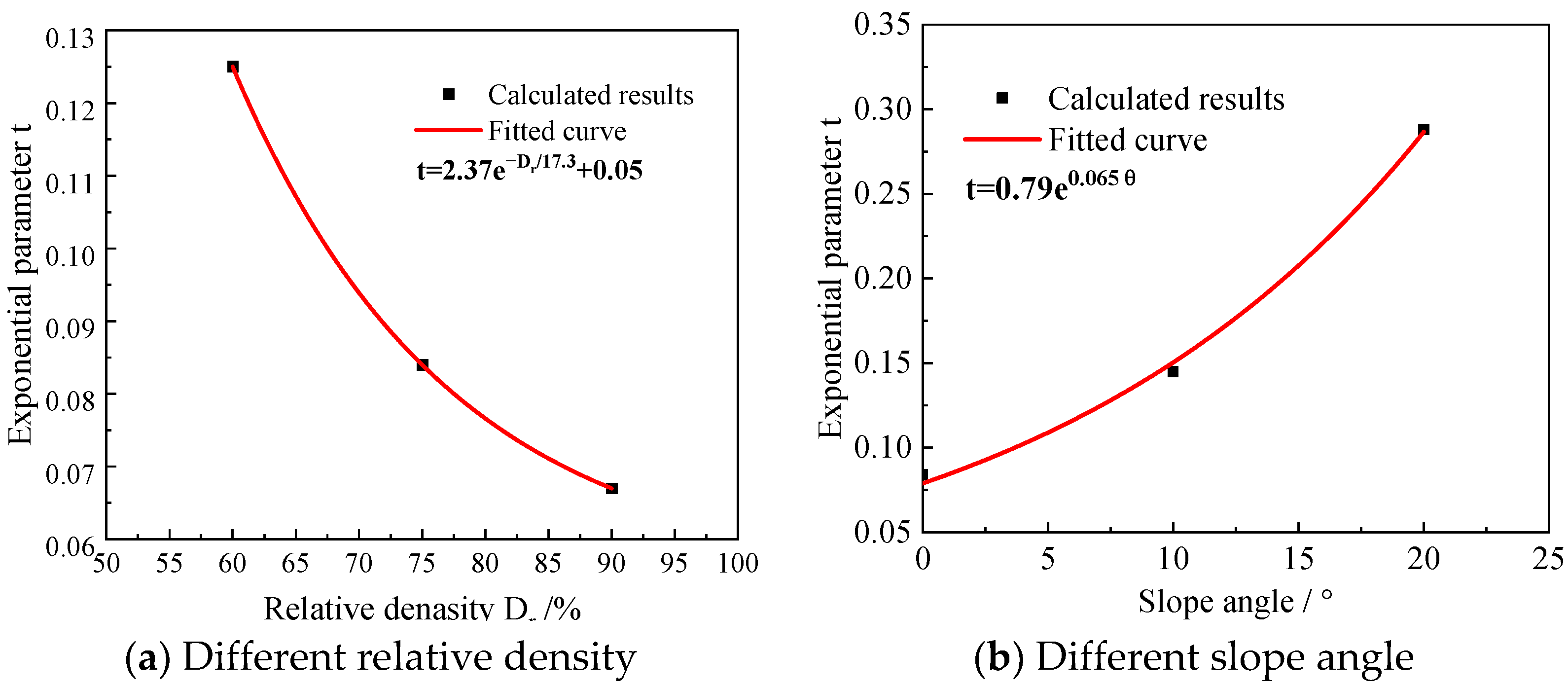 | Relative Density/% | Influence Coefficient of Modulus/λ | Influence Coefficient of Depth/k | Poisson Ratio | Dilatancy Angle/° | Friction Angle/° |