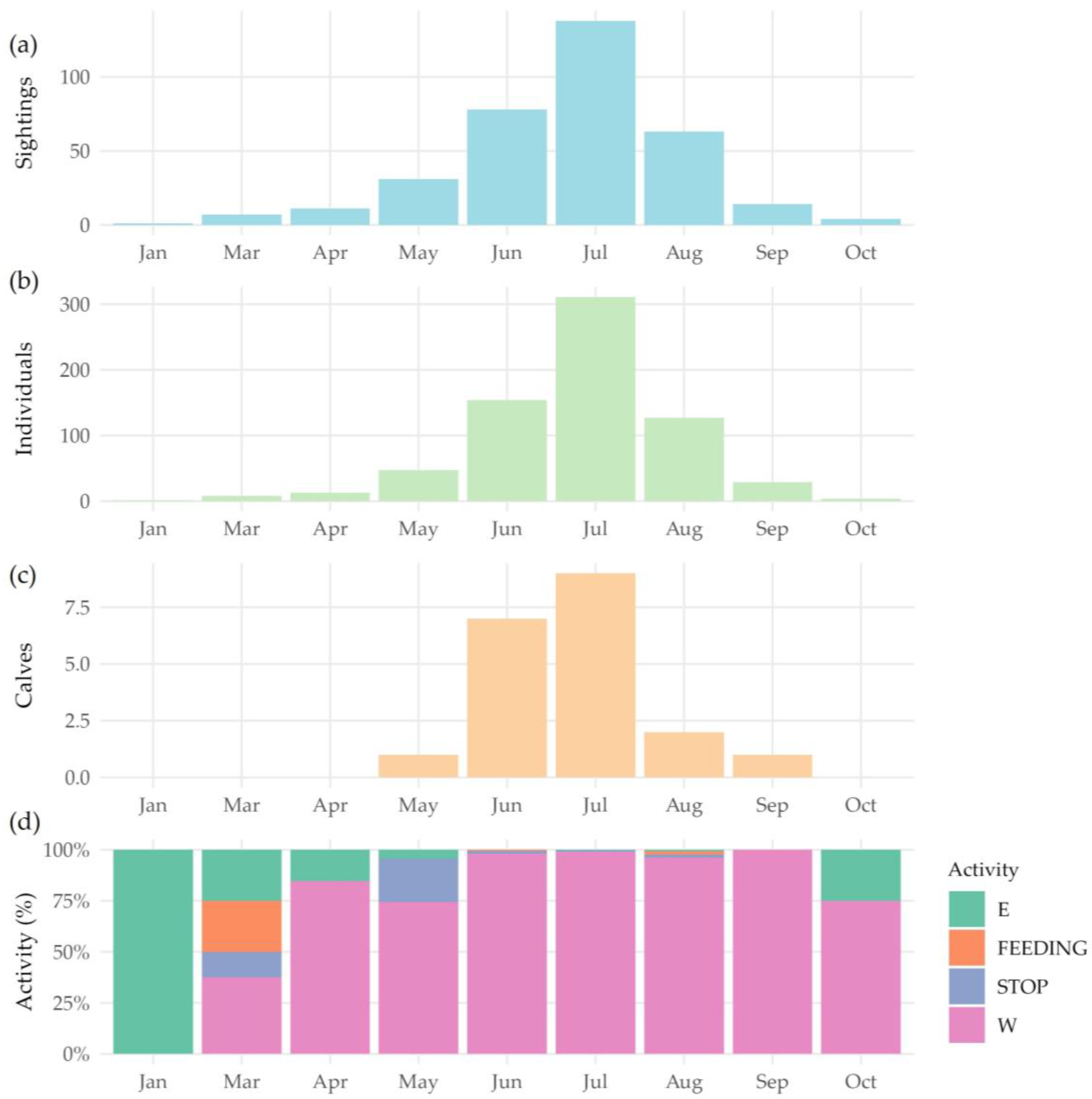 - Quantify and georeference fin whale sightings, identifying seasonal patterns of presence and movement.