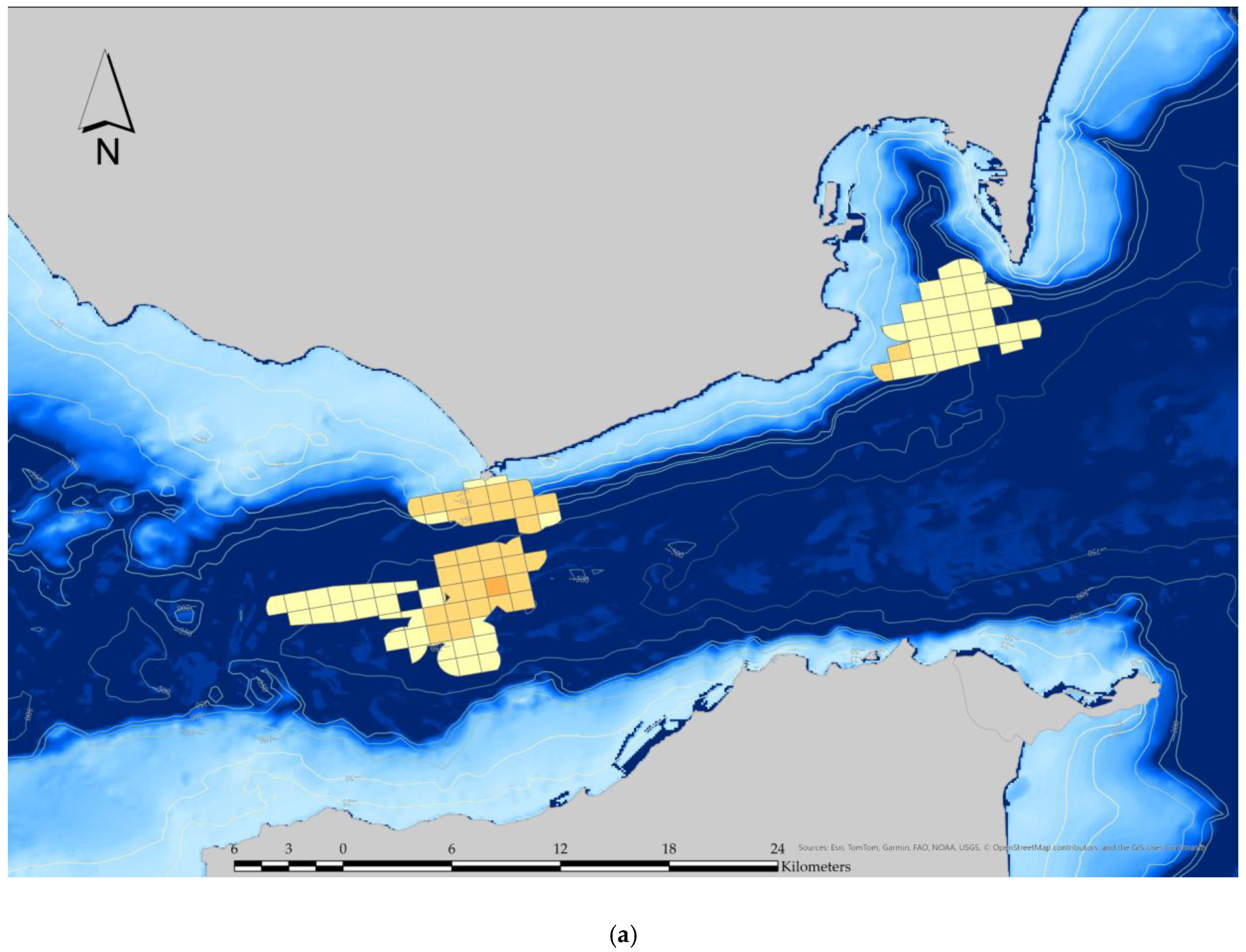 - IUCN-MMPATF. Northwest Mediterranean Sea, Slope and Canyon System IMMA Factsheet. IUCN Joint SSC/WCPA Marine Mammal Protected Areas Task Force. 2017. Available online: https://www.marinemammalhabitat.org/wp-content/uploads/imma-factsheets/Mediterranean/North-Western-Mediterranean-Sea-Slope-and-Canyon-System-Mediterranean.pdf (accessed on 12 June 2025).