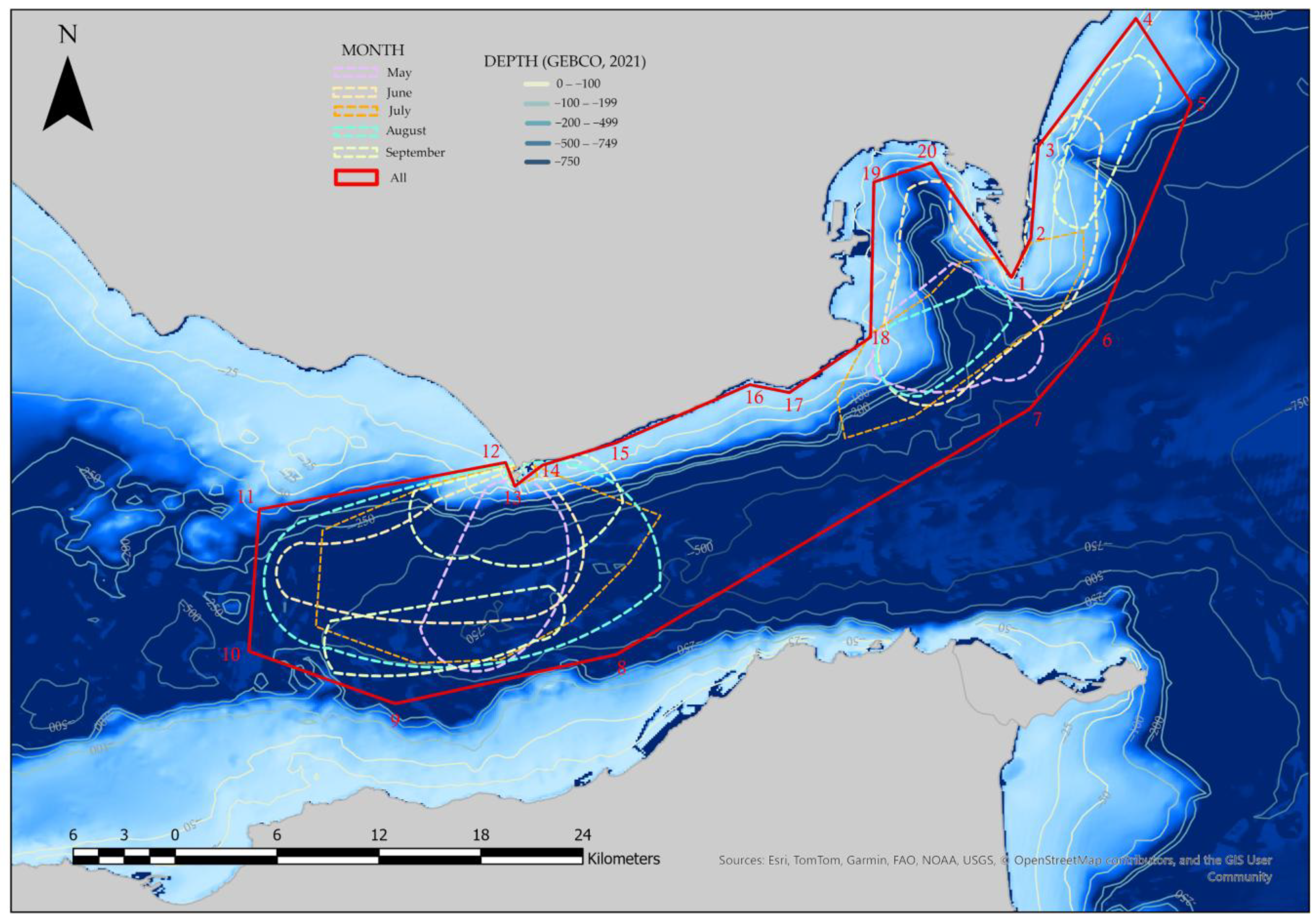 - Develop a spatial collision-risk map to identify priority areas for maritime-traffic management and species conservation.