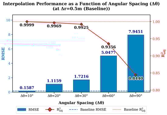 The baseline model exhibited high predictive accuracy, which enabled interpolation tests to be conducted by systematically varying the angular and radial spacing intervals. As summarized in Table 4, five interval values were defined for each parameter, and their combinations were evaluated. Each interpolation case was trained using a filtered dataset and tested with independent samples excluded from training.