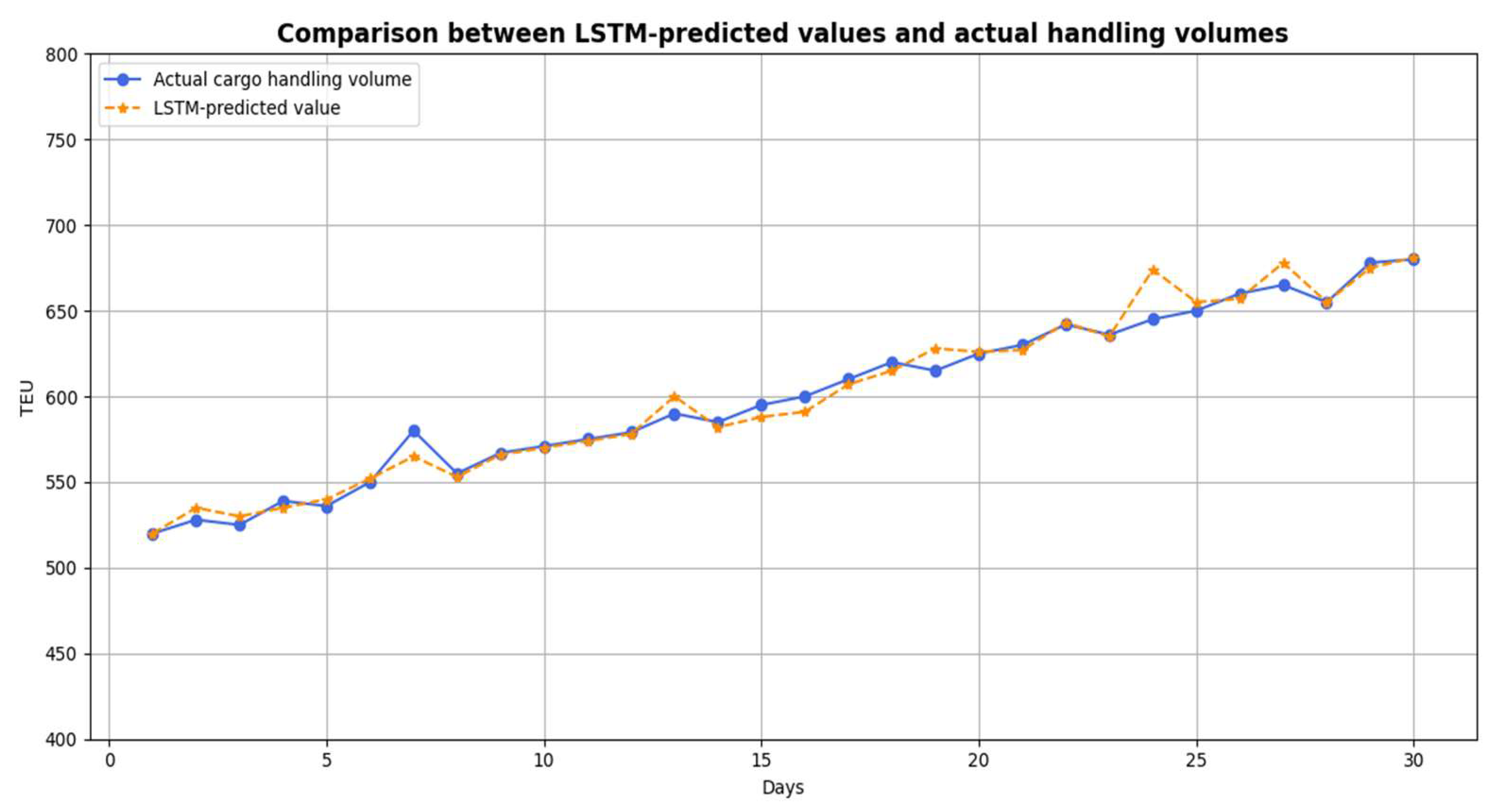 - The machine learning-based dynamic demand forecasting is executed before optimization. To overcome the limitations of static container throughput assumptions, this study incorporates deep learning techniques—such as Long Short-Term Memory (LSTM) networks—for forecasting dynamic port demand. This enables scheduling optimization to respond to fluctuations in container flows and facilitates demand-driven route planning and capacity matching.