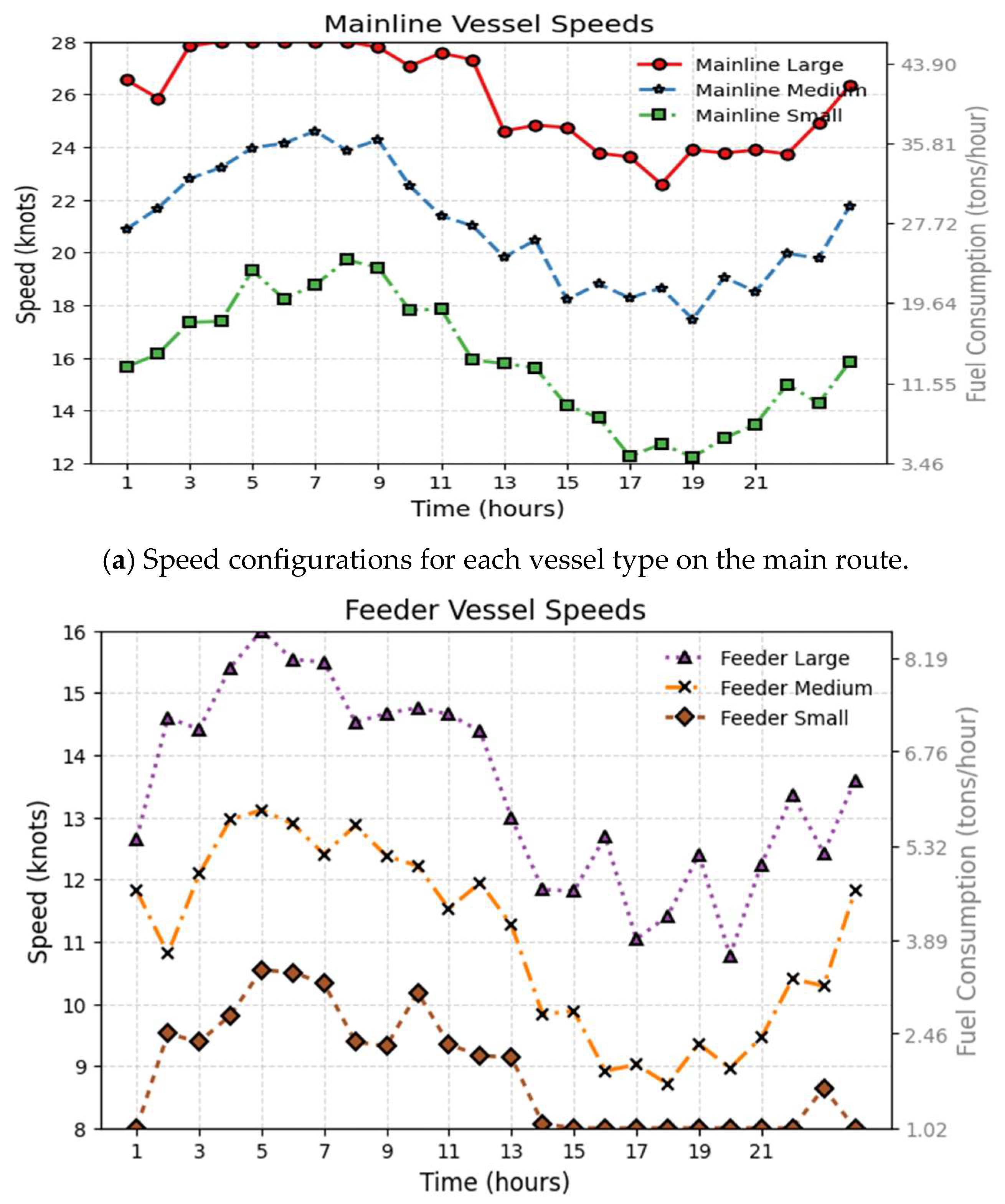 - Fuel allocation: Assigning vessel types and capacities to specific routes and determining sailing speeds along each leg to balance fuel consumption and travel time