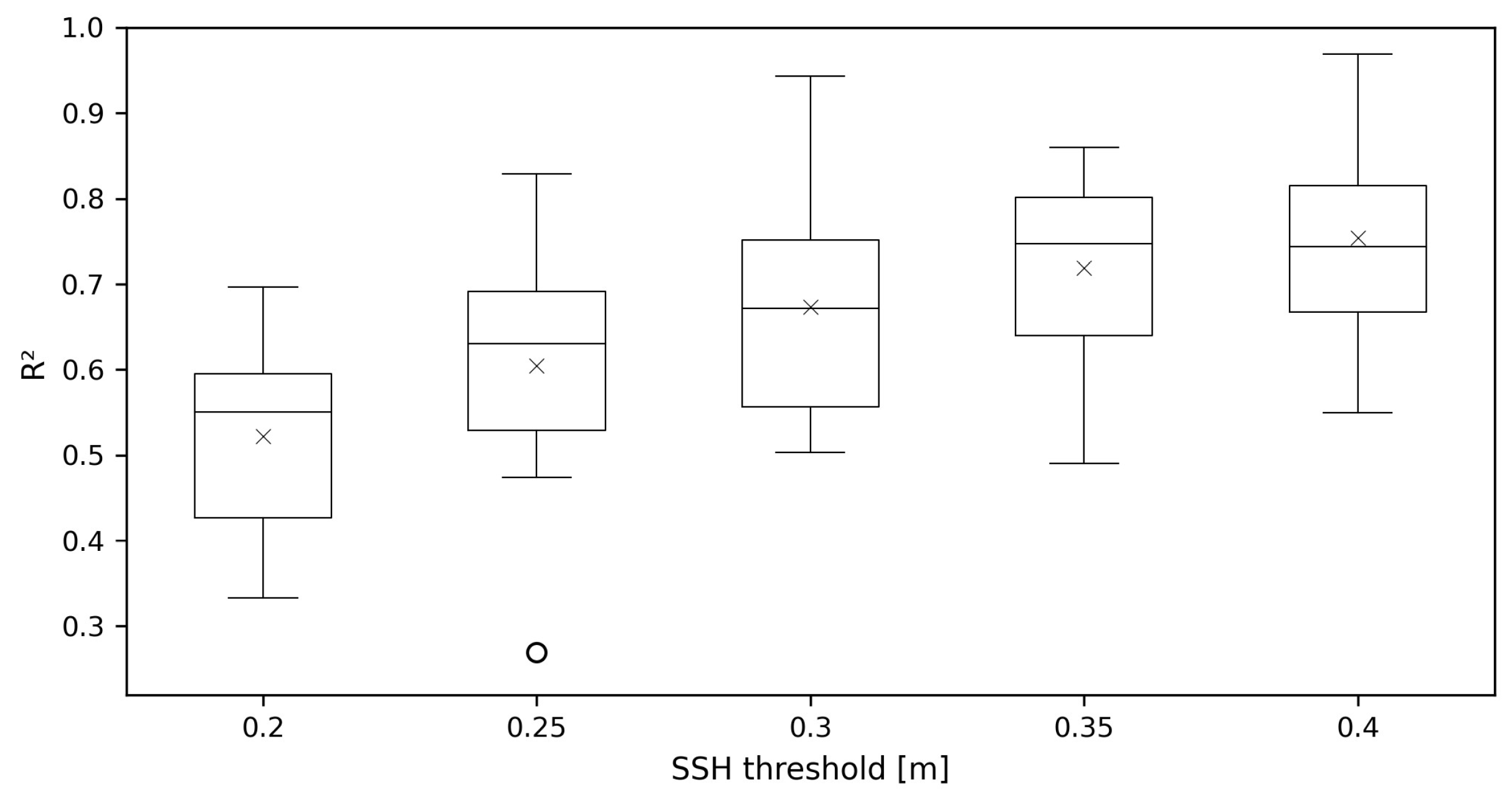 3.1. Effect of SSH Threshold Selection on Model Performance Under Over- and Under-Sampling Schemes