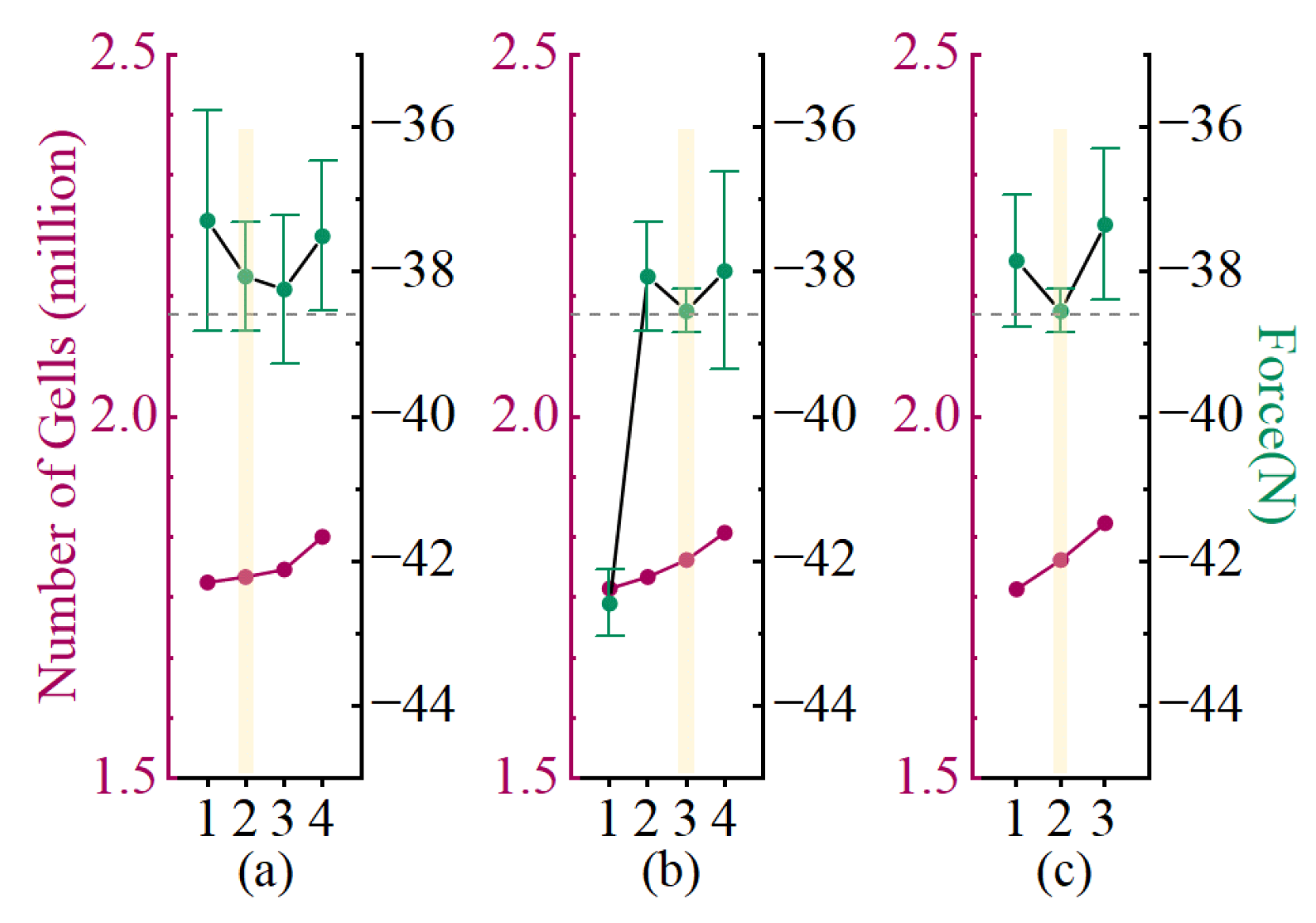 | No. | y+ | Boundary Layer | Minimum Surface Size (mm) | Number of Cells | Force (N) | |||||