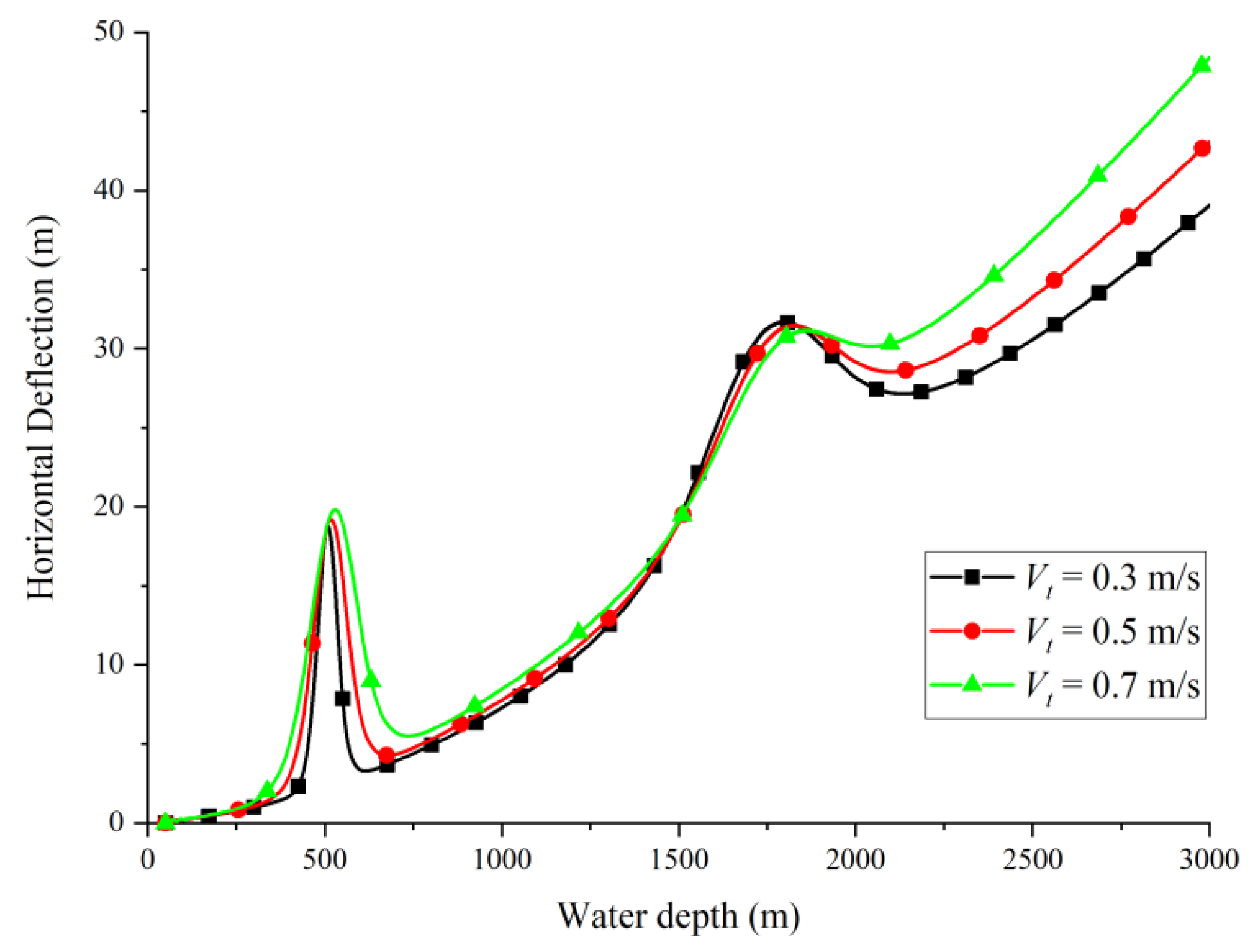 - Ruan, W.; Chen, M.; Nie, Q.; Xu, P.; Li, J.; Wang, X. Dynamic Response of Steel Lazy Wave Riser Considering the Excitation of Internal Solitary Wave and Ocean Currents. Ocean Eng. 2024, 294, 116708. [Google Scholar] [CrossRef]