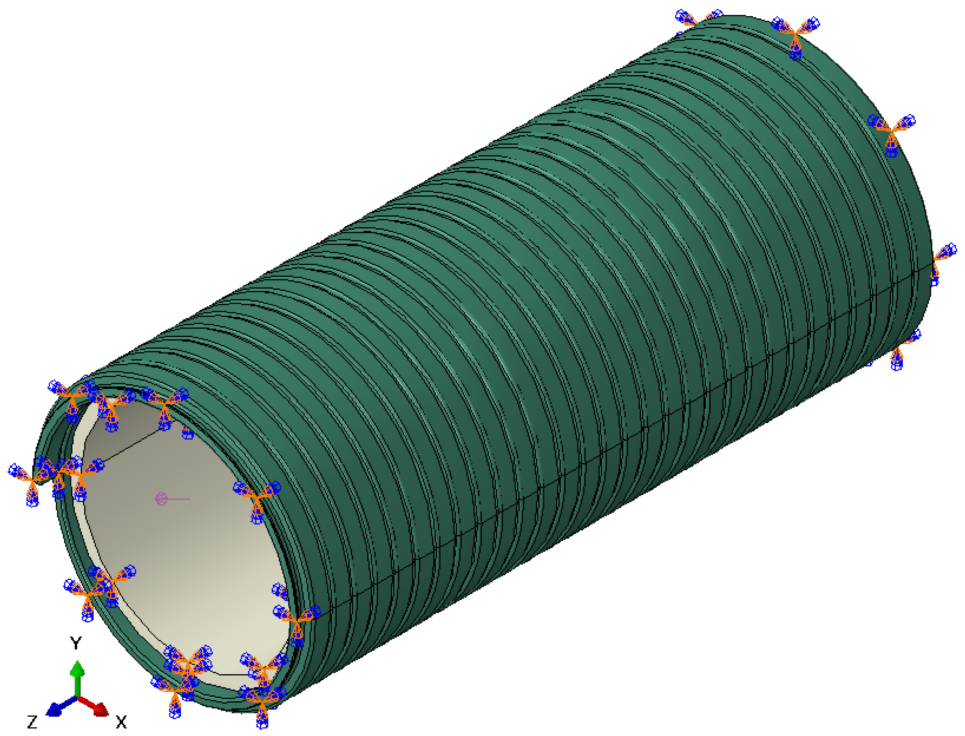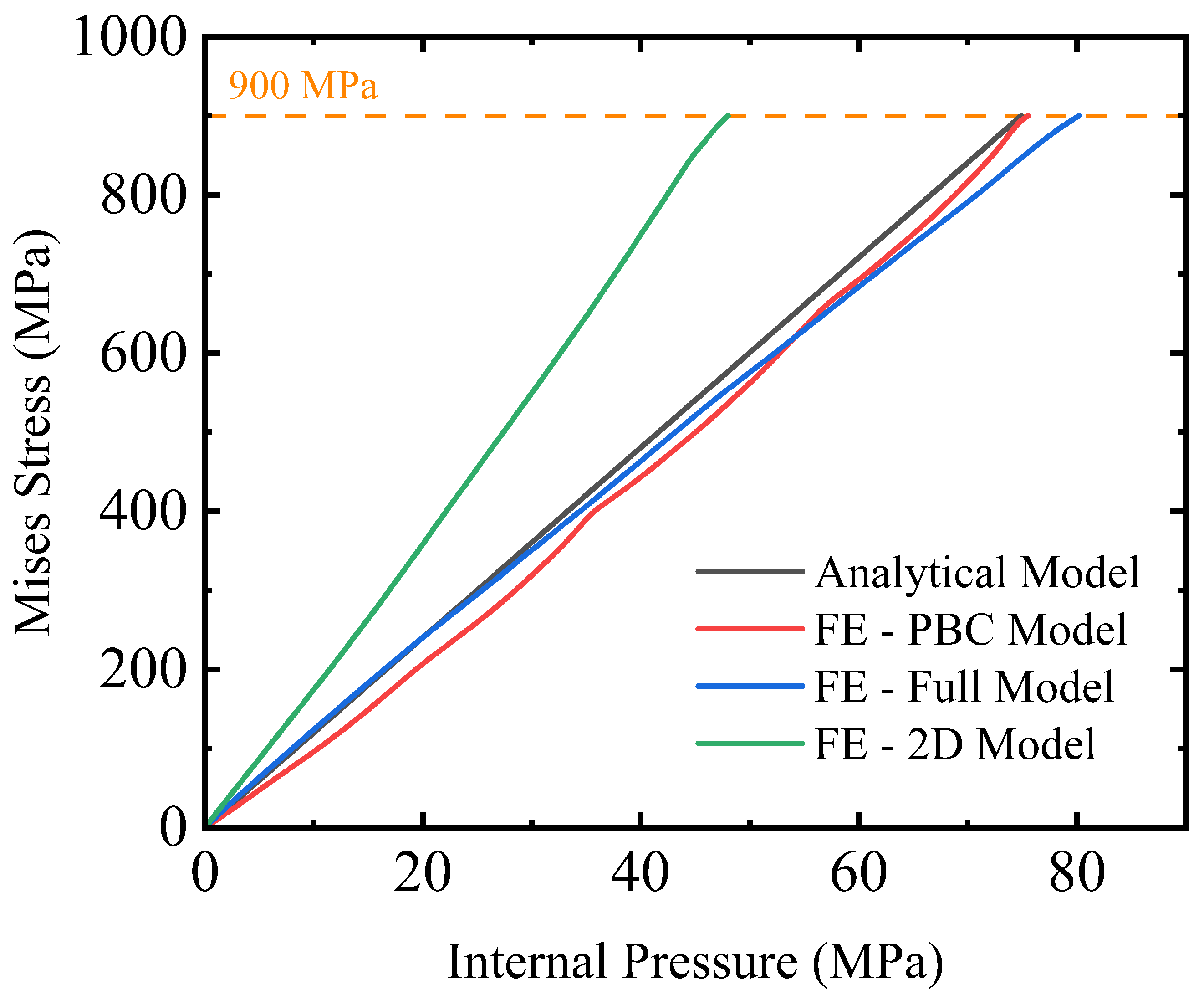 - The PBC model closely reproduced the analytical hoop stress response while maintaining a slightly conservative prediction relative to the full 3D model. By eliminating end effects and enforcing periodicity, it retained the essential mechanics of the interlocking Z-shaped strip while achieving a reduction in runtime of more than an order of magnitude.